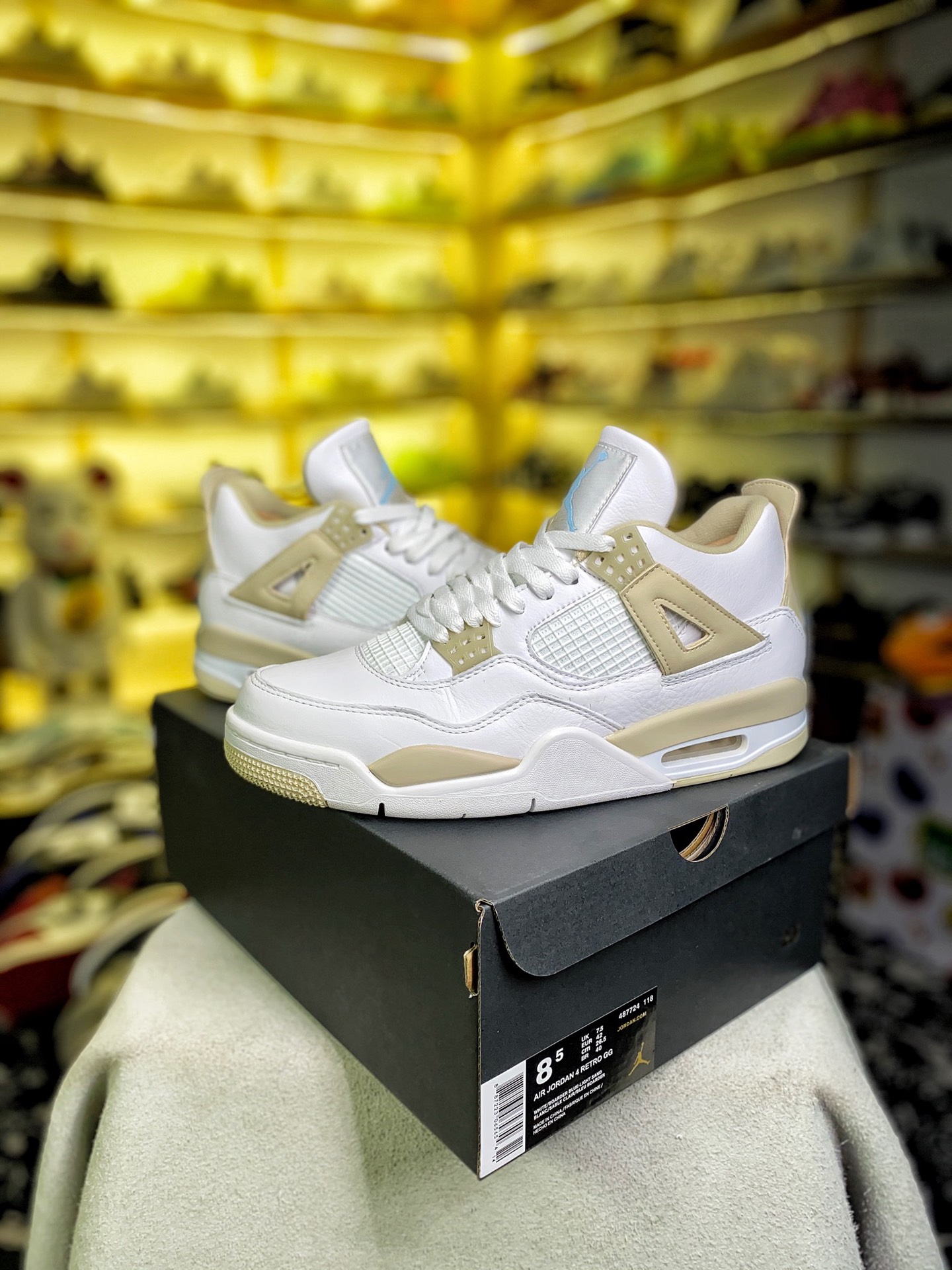 Pure original AJ4 platinum shipping ? ? Top leather ??Air Jordan 4 GS Linen AJ4 white gold basketball shoes Item Number: 487724-118 nSize: 40-47.5 with half size
