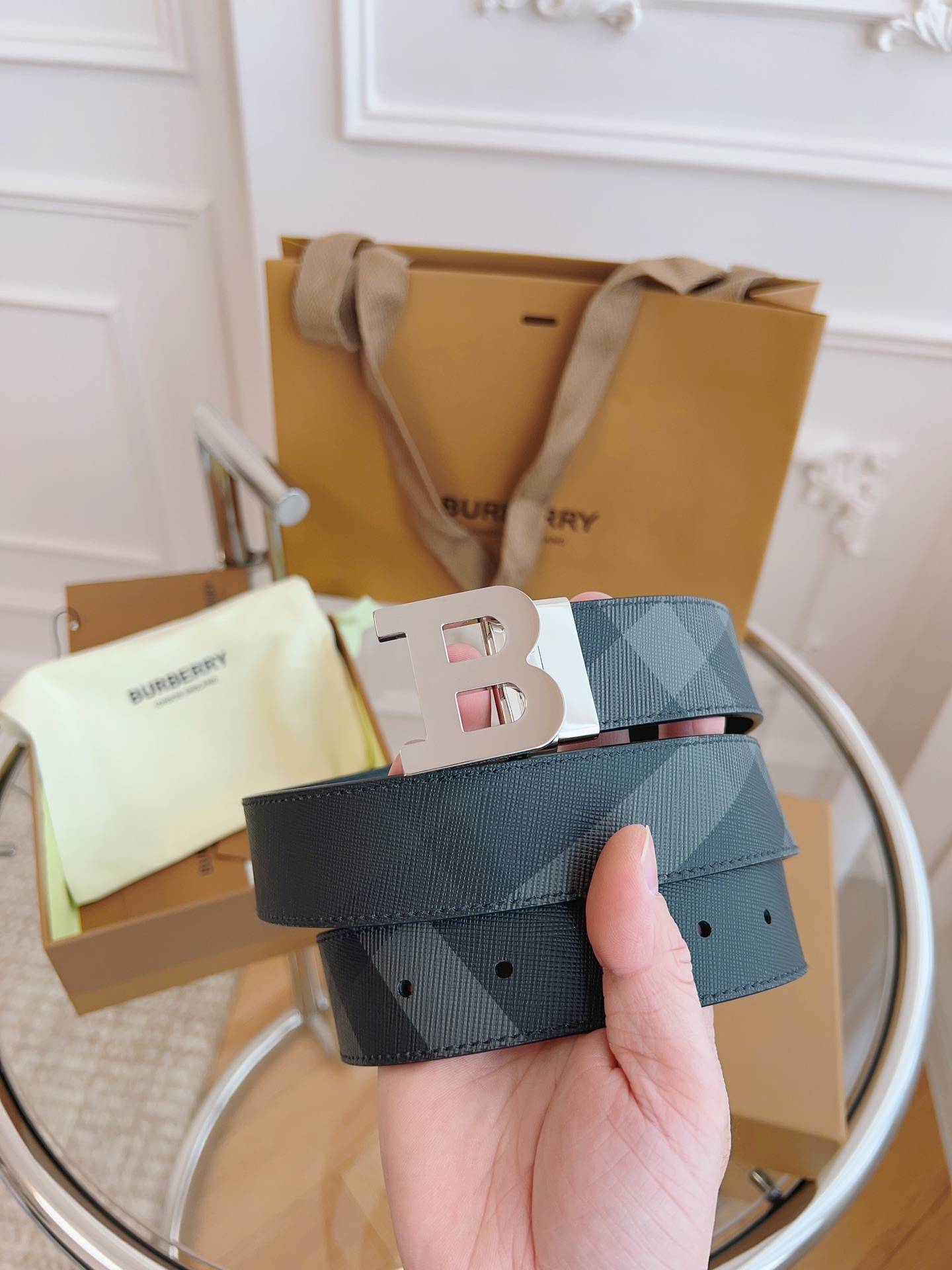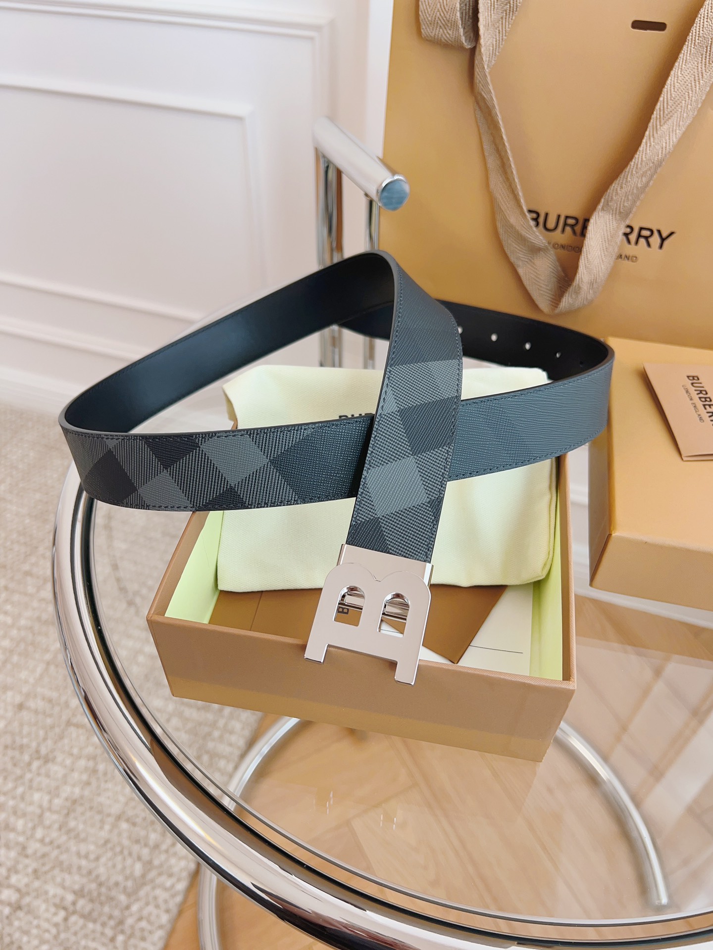 Burberry is made of top-grain leather from the original factory. The quality of the check/cowhide is beyond doubt. There is no better, only the best. The width of the belt is 3.5 cm