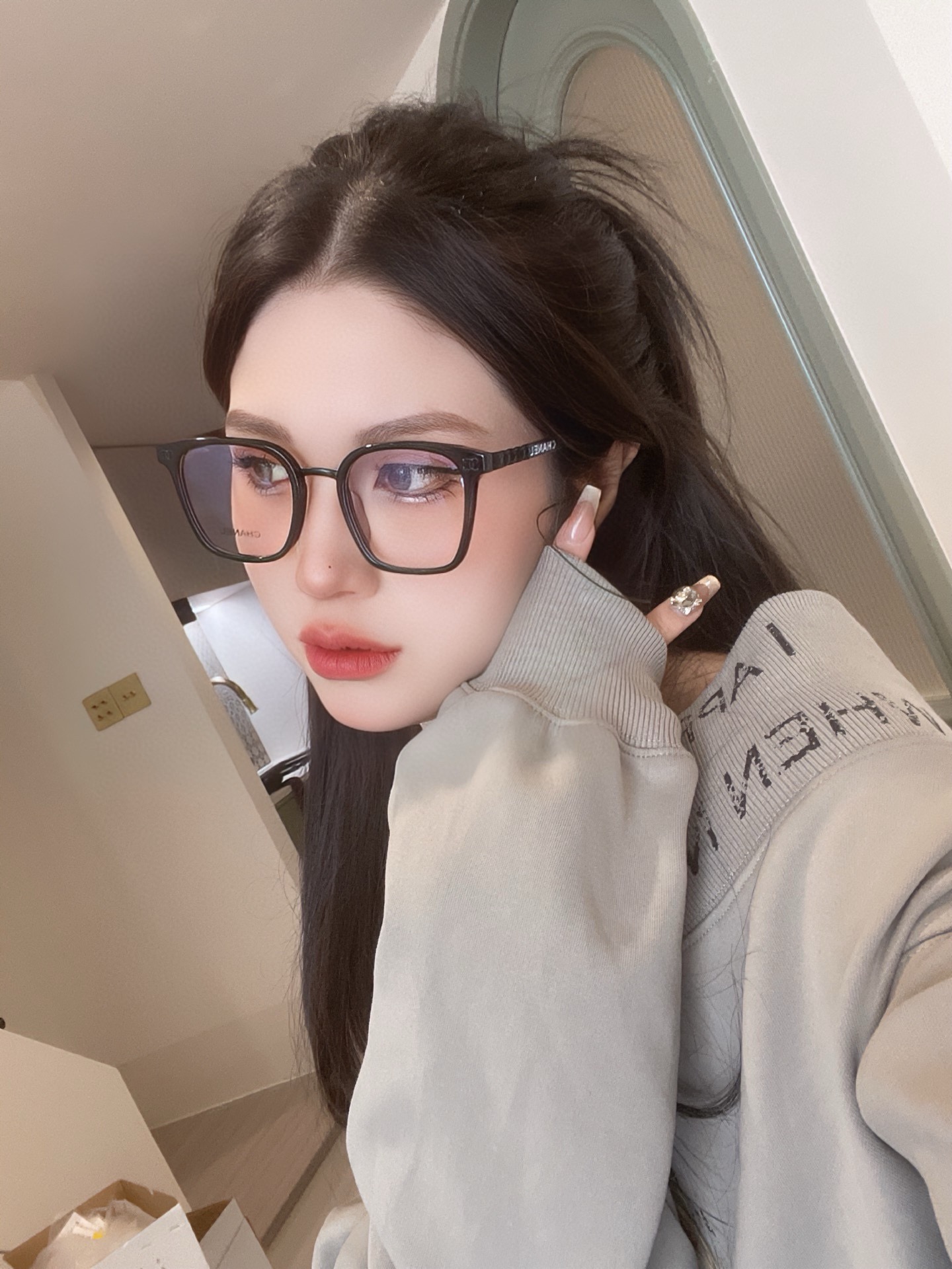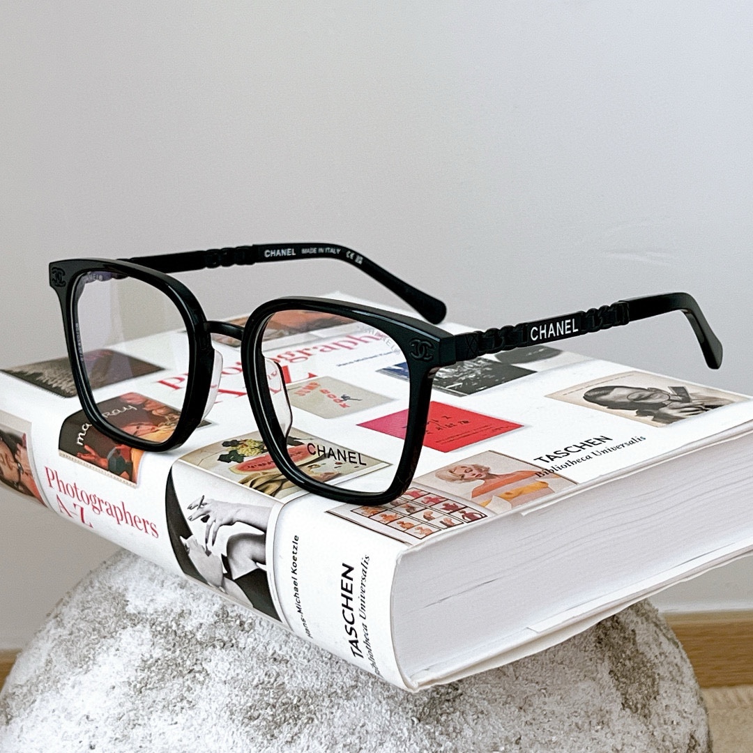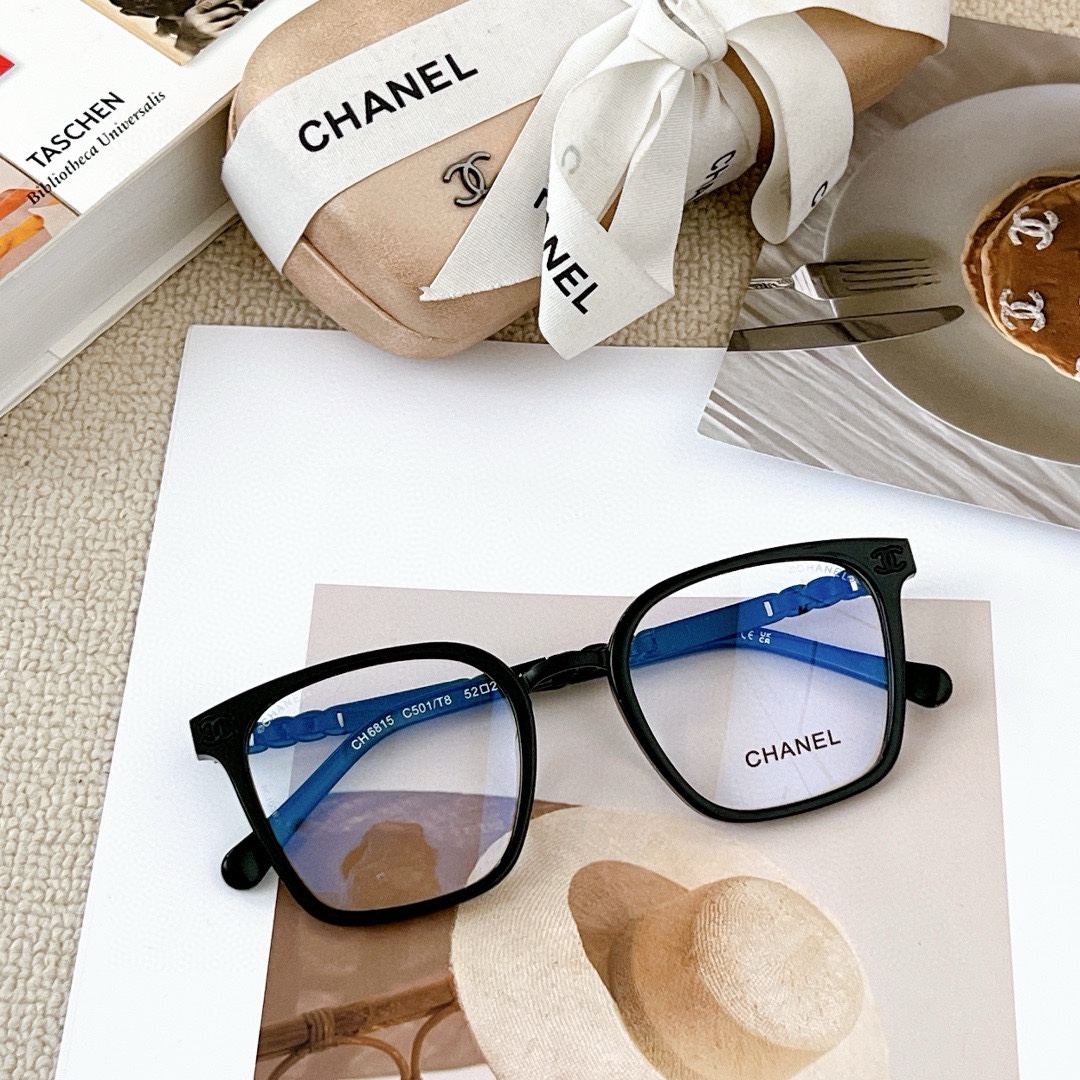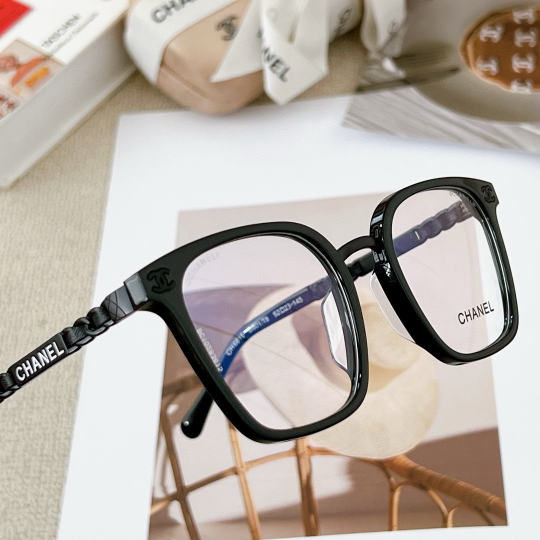 CHANE* Black Bushifu brand eyeglass frame Mod: 6815 size: 52-23-145 The most classic and highly popular circle shape Fine woven leather ? engraved Fu brand temples retro style ?? ??