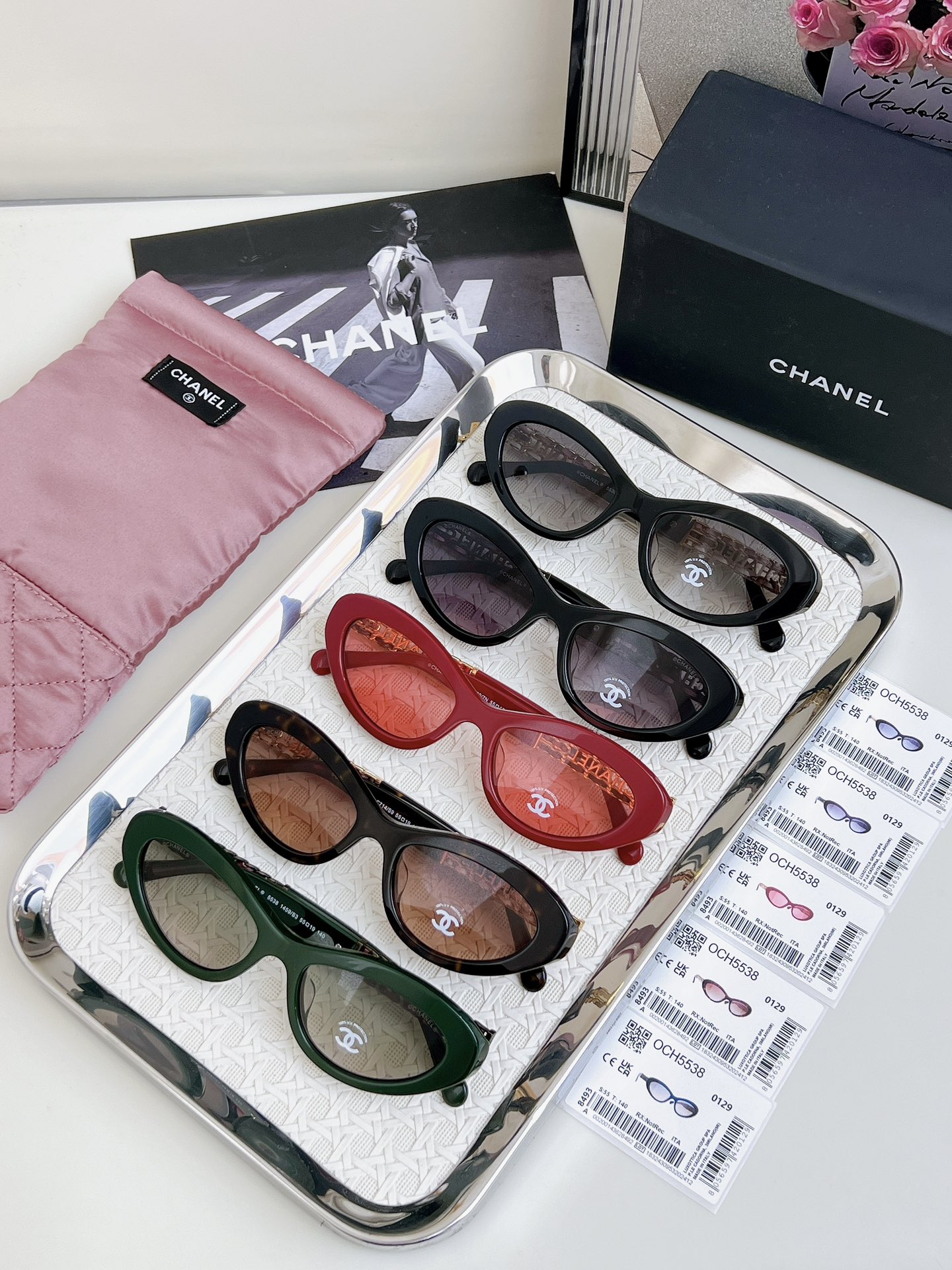 Compare your money for goods with ?? High version 1:1 color Exquisite Xiaoxiang's stunning sunglasses Three-color sheepskin woven temple legs CHANE* MOD: 5538 SIZE: 55 holes, 19-140 ??