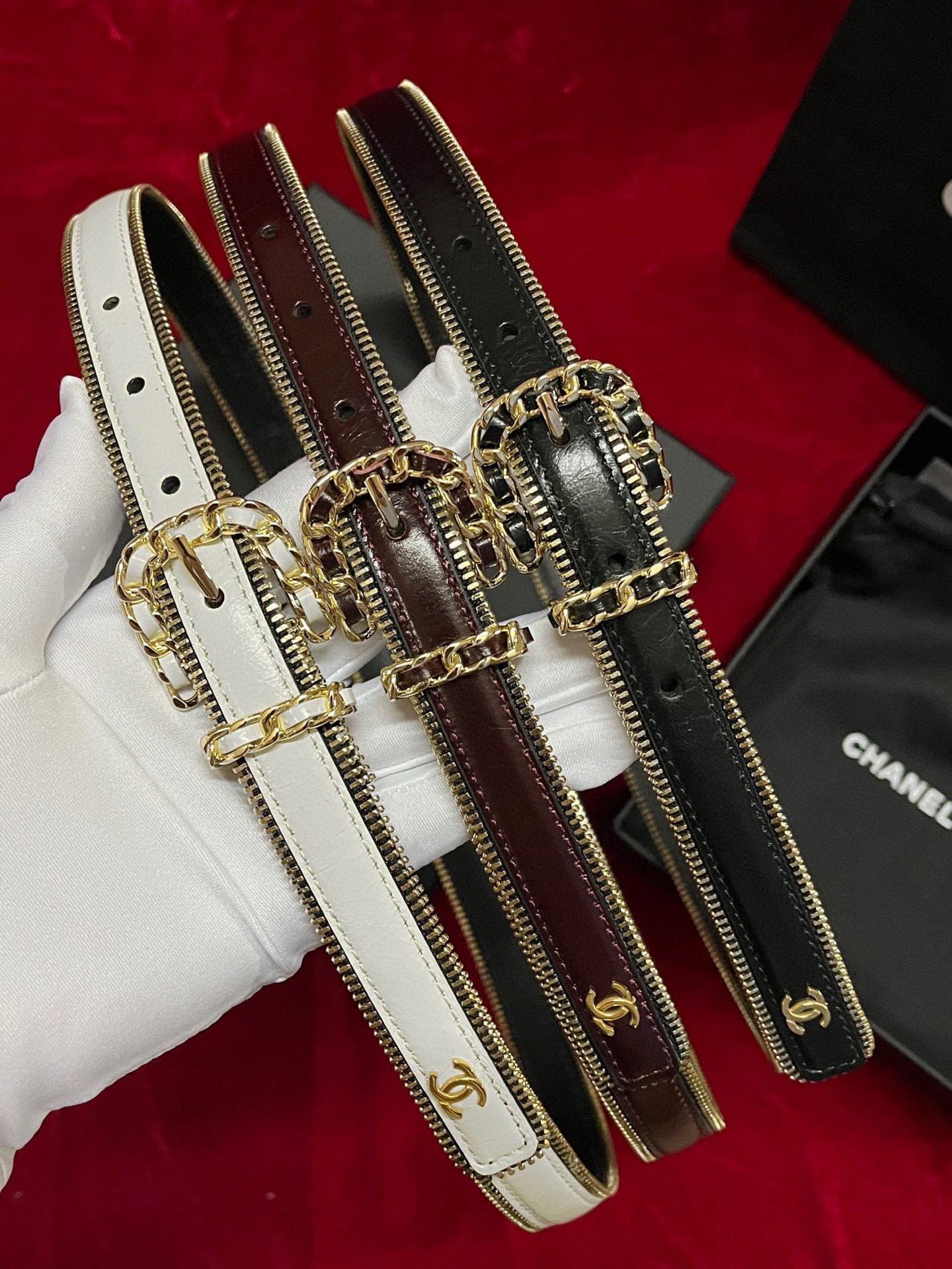 Chanel 2.0Cm new women's belt with zipper, double-sided top-grain cowhide. This belt is simply perfect! Leather chains paired with skirts, windbreakers and jeans are extremely versatile