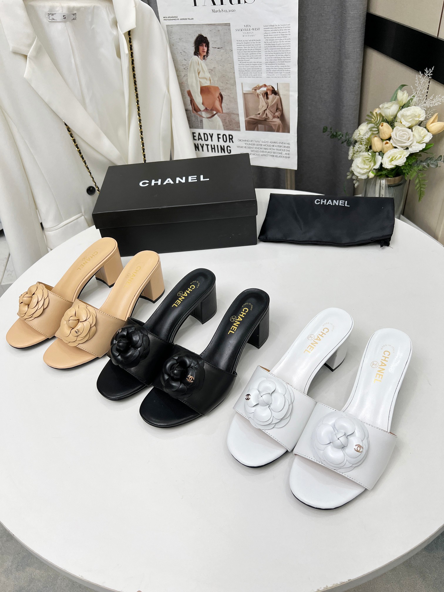 Factory price ???? Women shoes factory chanel Chanel 2024 new slippers ???? Official website counter, fabric sheepskin, lining sheepskin, foot pads goatskin, 3 colors to choose, 35-42 size, Chanel