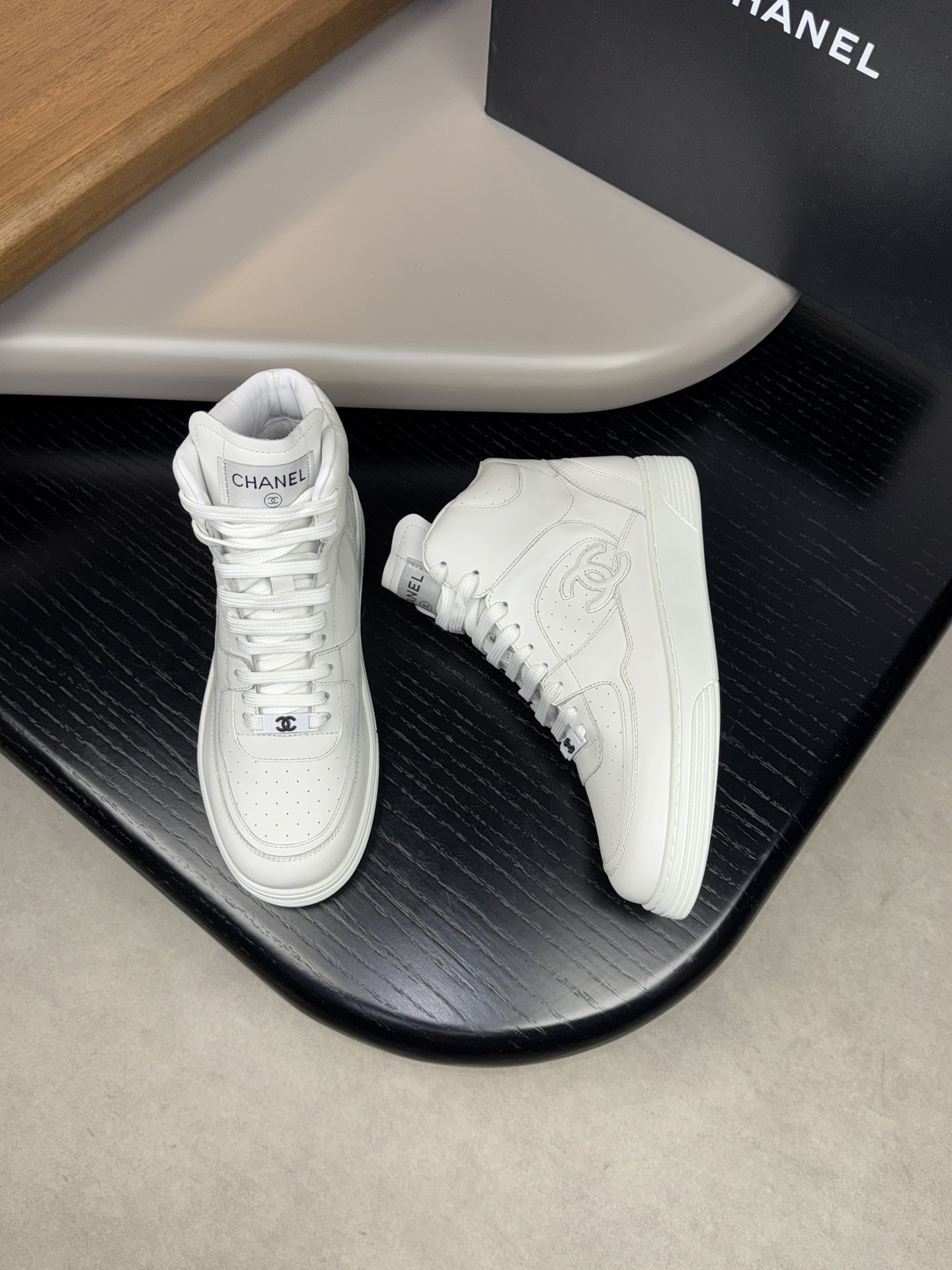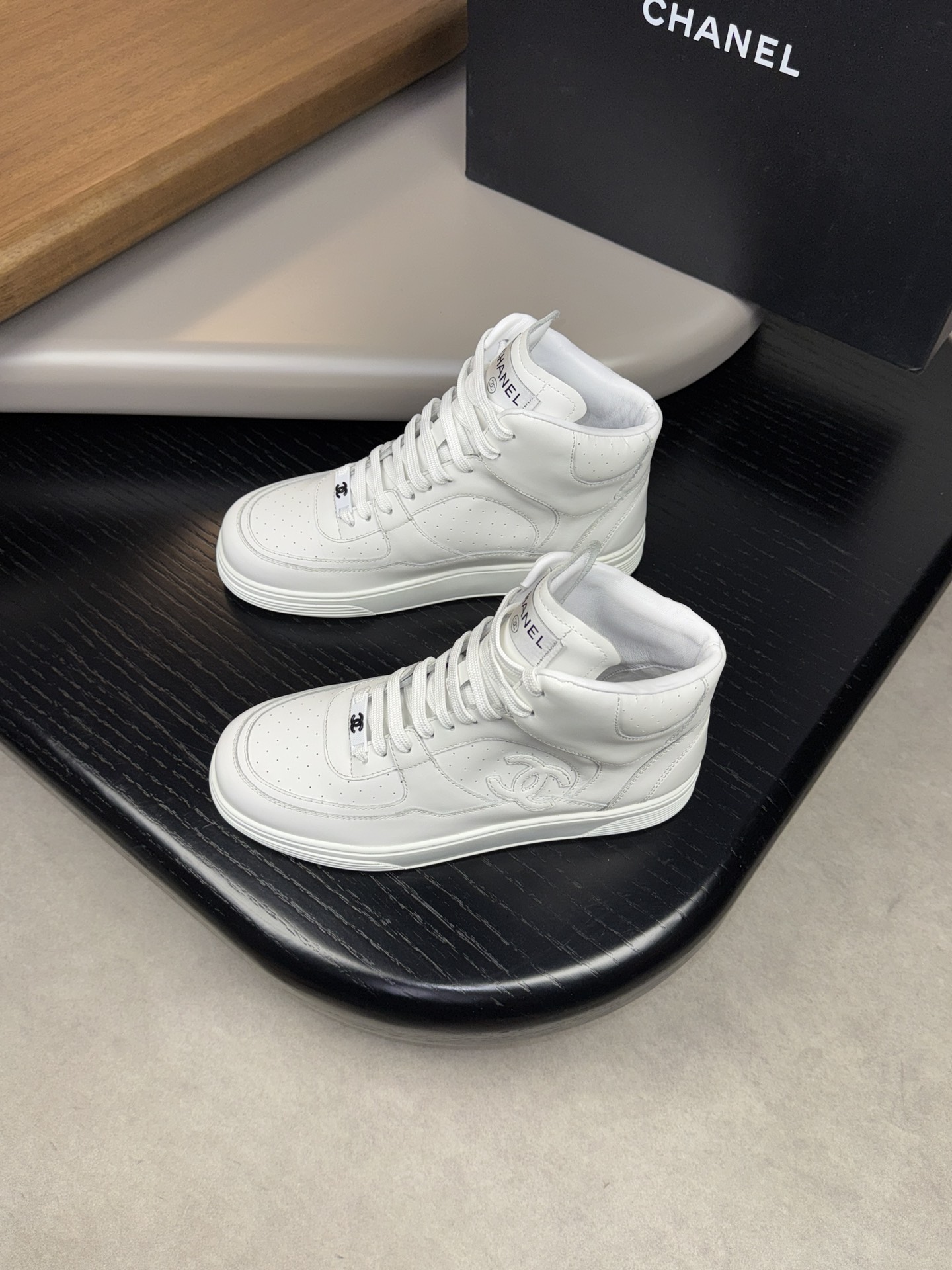 CHANEL #4009?????? - Premium quality ORIGINAL single ?????? casual high top sneakers - Upper: ?? silk calfskin with brand pattern stitching on the upper - Inside: Water-dyed sheepskin - Outsole: Ultra-light TPR