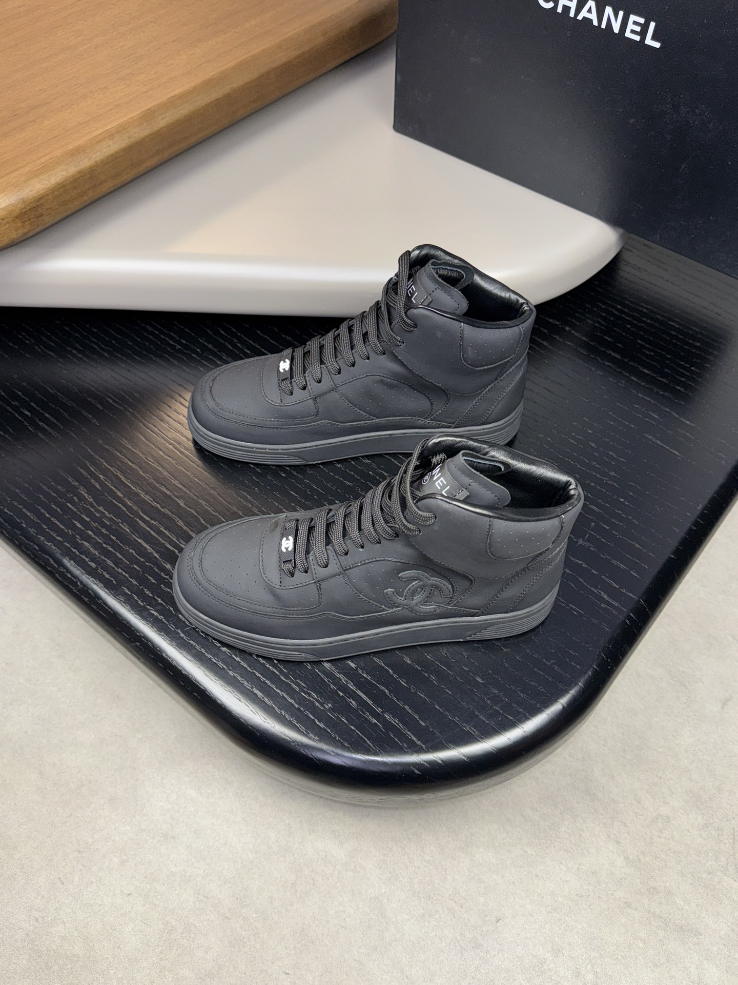 CHANEL #4009?????? - Premium quality ORIGINAL single ?????? casual high top sneakers - Upper: ?? silk calfskin with brand pattern stitching on the upper - Inside: Water-dyed sheepskin - Outsole: Ultra-light TPR