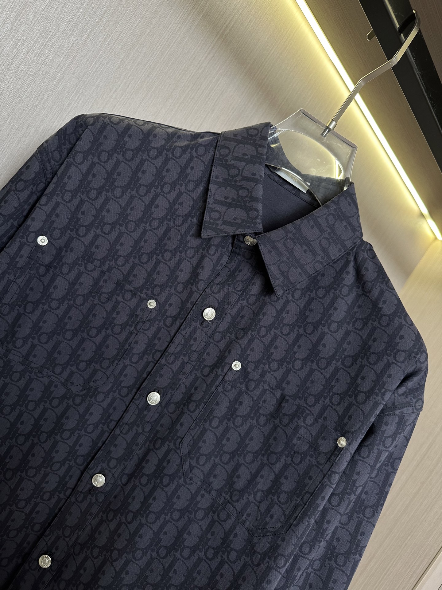 ?? dior CD 25 full body dark pattern monogram LOGO jacquard long-sleeved shirt denim jacket Navy blue jacquard letter lapel cd classic logo design, cotton denim, custom high-quality hardware, men's and women's same three-color hair color: black, blue, white Size: S-XL