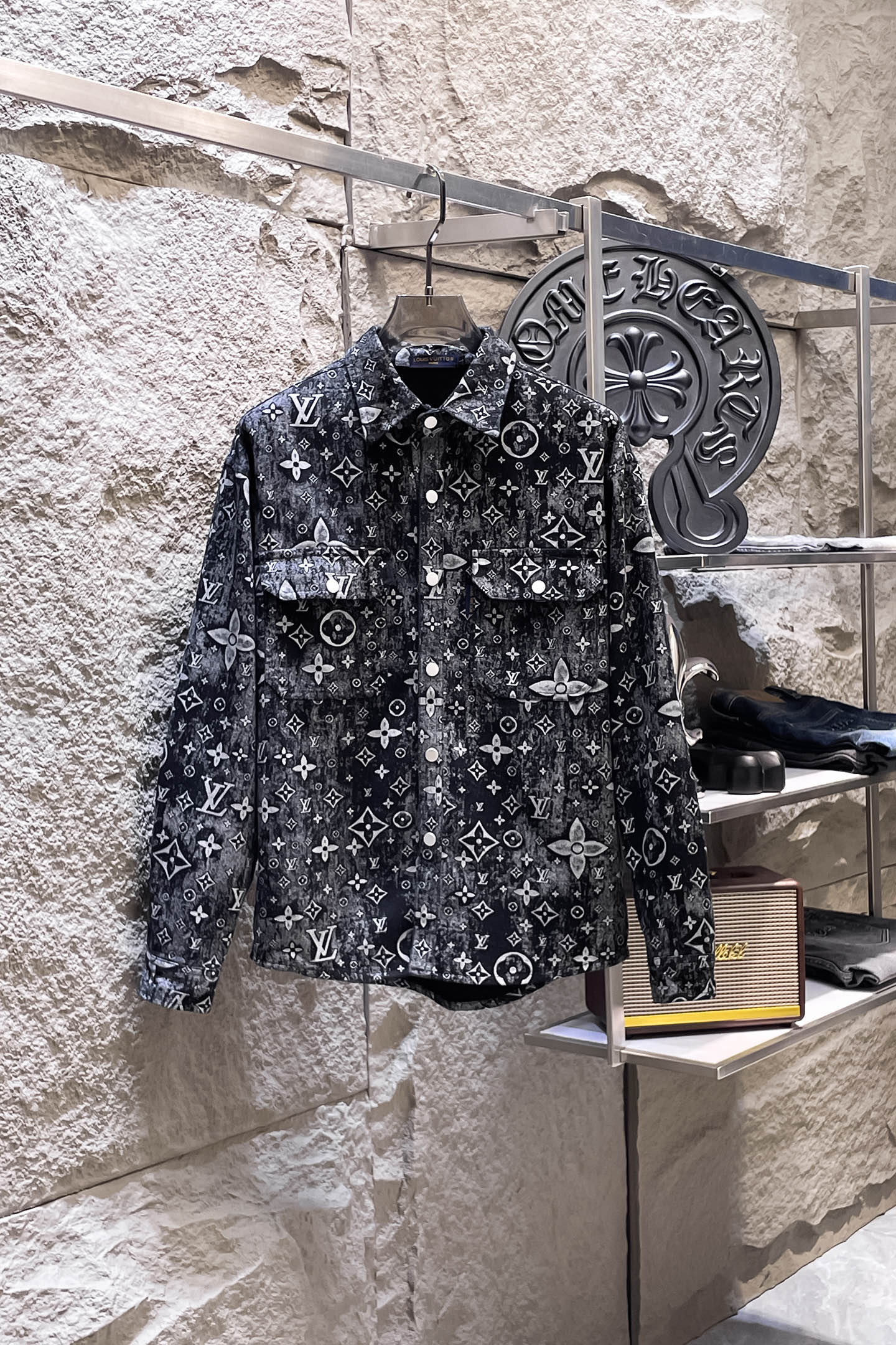 LV Louis Vuitton long-sleeved shirt denim jacket is made of imported denim fabric, featuring logo jacquard and heavy washing. It is a blouses top jacket decorated with metal buttons, presenting a crisp and stylish look. With a unique Angle, it is a new choice for fashion and versatility! Size: M-3XL