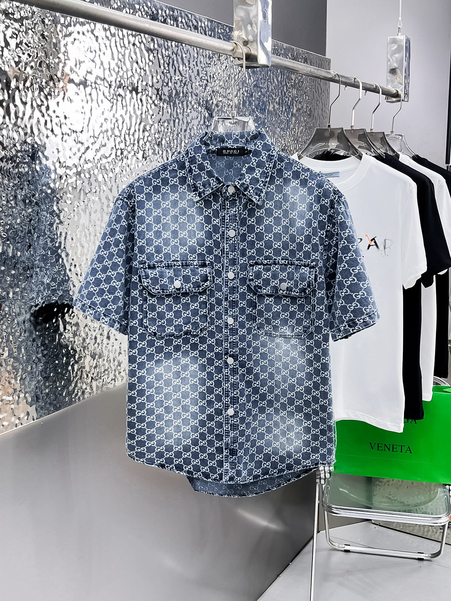 The GUCC short-sleeved shirt denim jacket is made of imported denim fabric, featuring a logo jacquard design and heavy washing. It is a blouses top jacket decorated with metal buttons, presenting a crisp and stylish look. With its unique Angle, it offers a brand-new interpretation of fashion and is the top choice for all kinds of outfits! Size: M-3XL