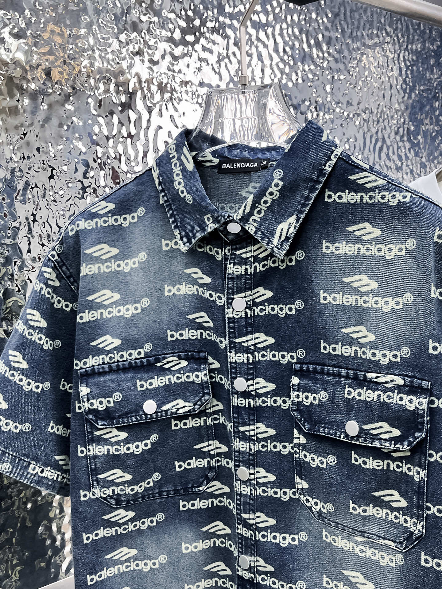 The Parisian short-sleeved shirt denim jacket is made of imported denim fabric, featuring logo jacquard and heavy washing. It is a shirt-shaped top jacket decorated with metal buttons, presenting a crisp and stylish look. With a unique Angle, it offers a brand-new interpretation of fashion and is a versatile choice! Size: M-3XL