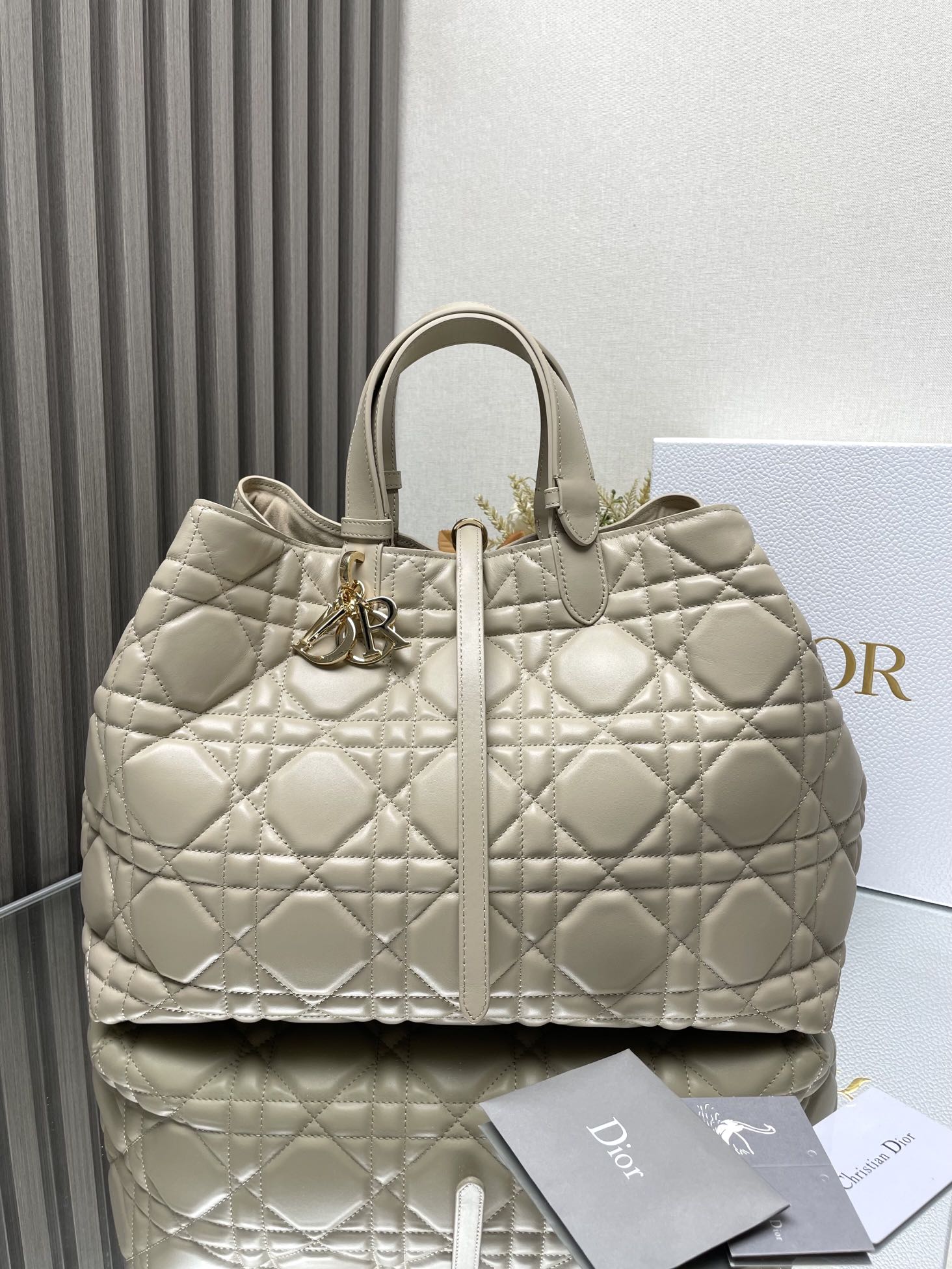 DIOR ??TOUJOURS [large apricot] This Dior Toujours handbag made a brilliant appearance at the Spring/Summer 2023 collection show, with a casual and practical design that was unique. Crafted from light apricot cowhide, it is adorned with oversized rattan checkered stitching. The spacious interior compartments are paired with small bags, allowing for the neat storage of various daily necessities. It is equipped with a leather tie opening and closing, which can safely store various items. There is also a CD Lock letter D knob opening and closing that can be adjusted on both sides to enhance the style. Large size style, leather handle with adjustable details, can be carried by hand or over the shoulder. CD Lock and tie opening and closing D.I.O.R. pendant Detachable inner small bag Adjustable leather handle Contains a dust-proof bag Dimensions: 37 x 20 x 28.5 centimeters Handle length: 14-29 centimeters 6233