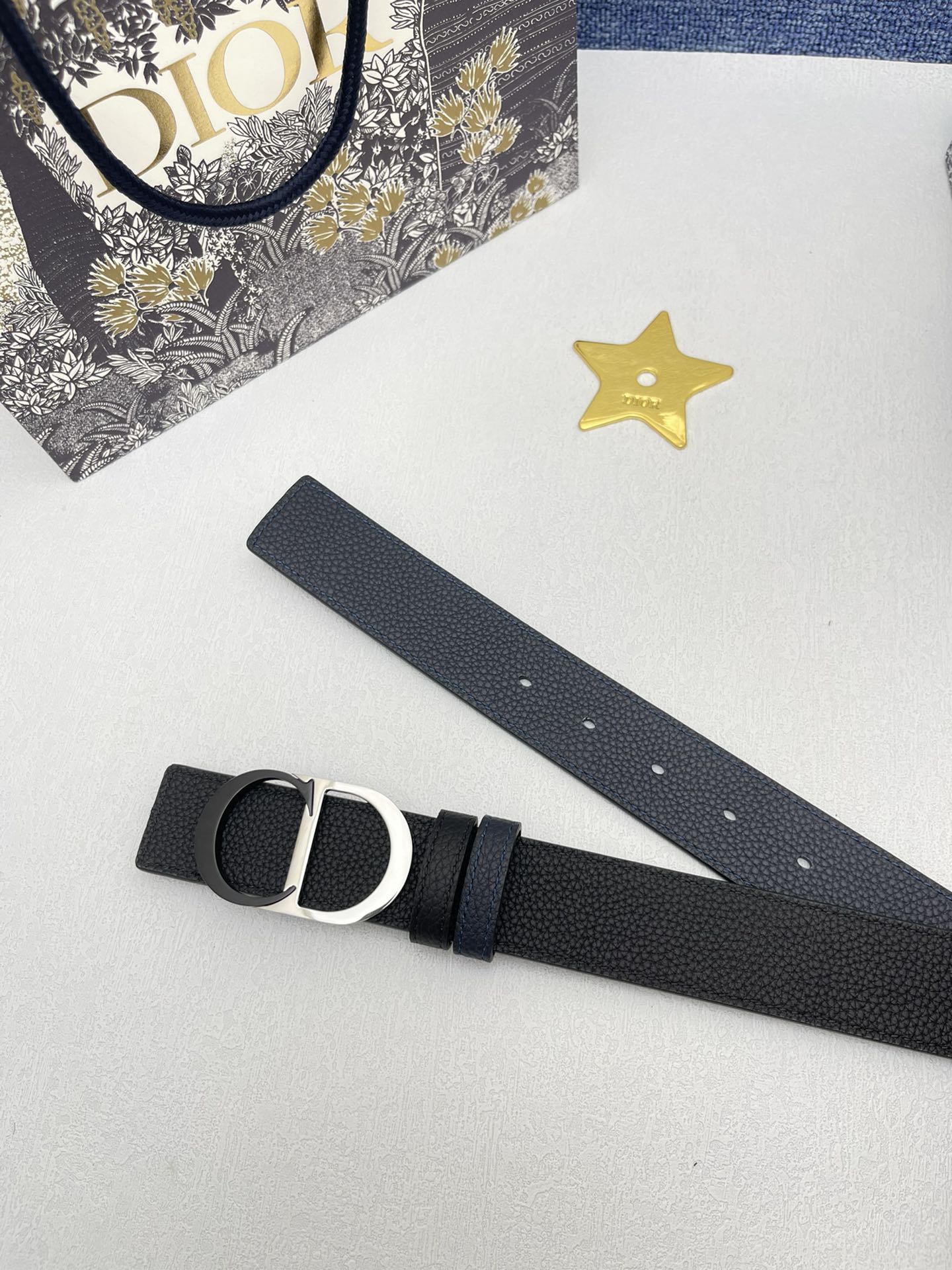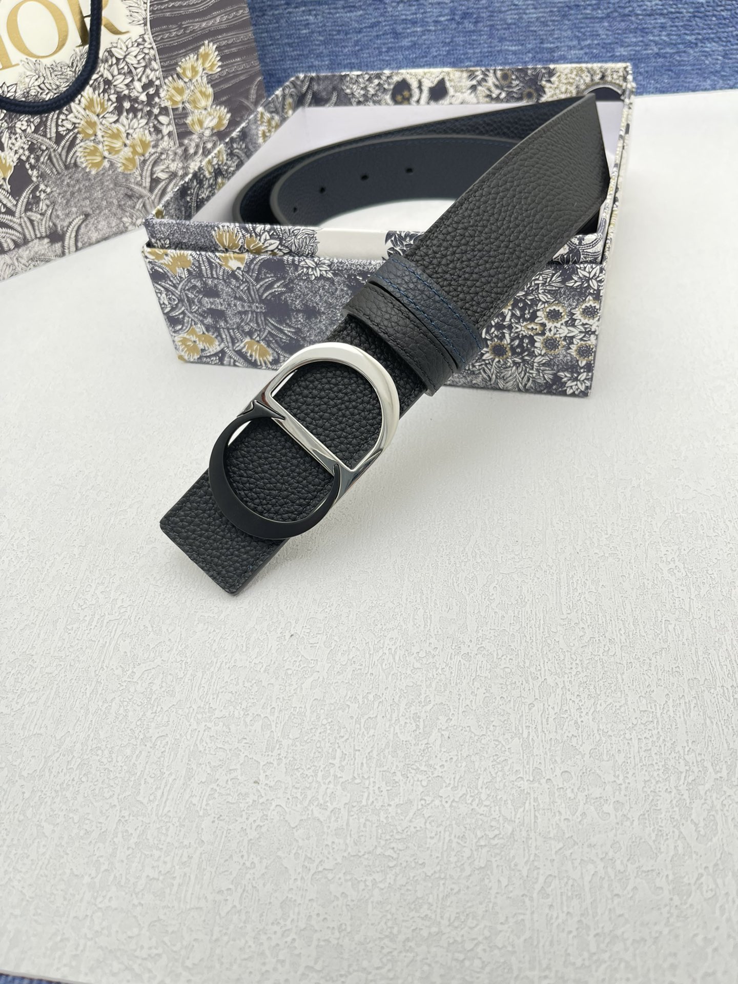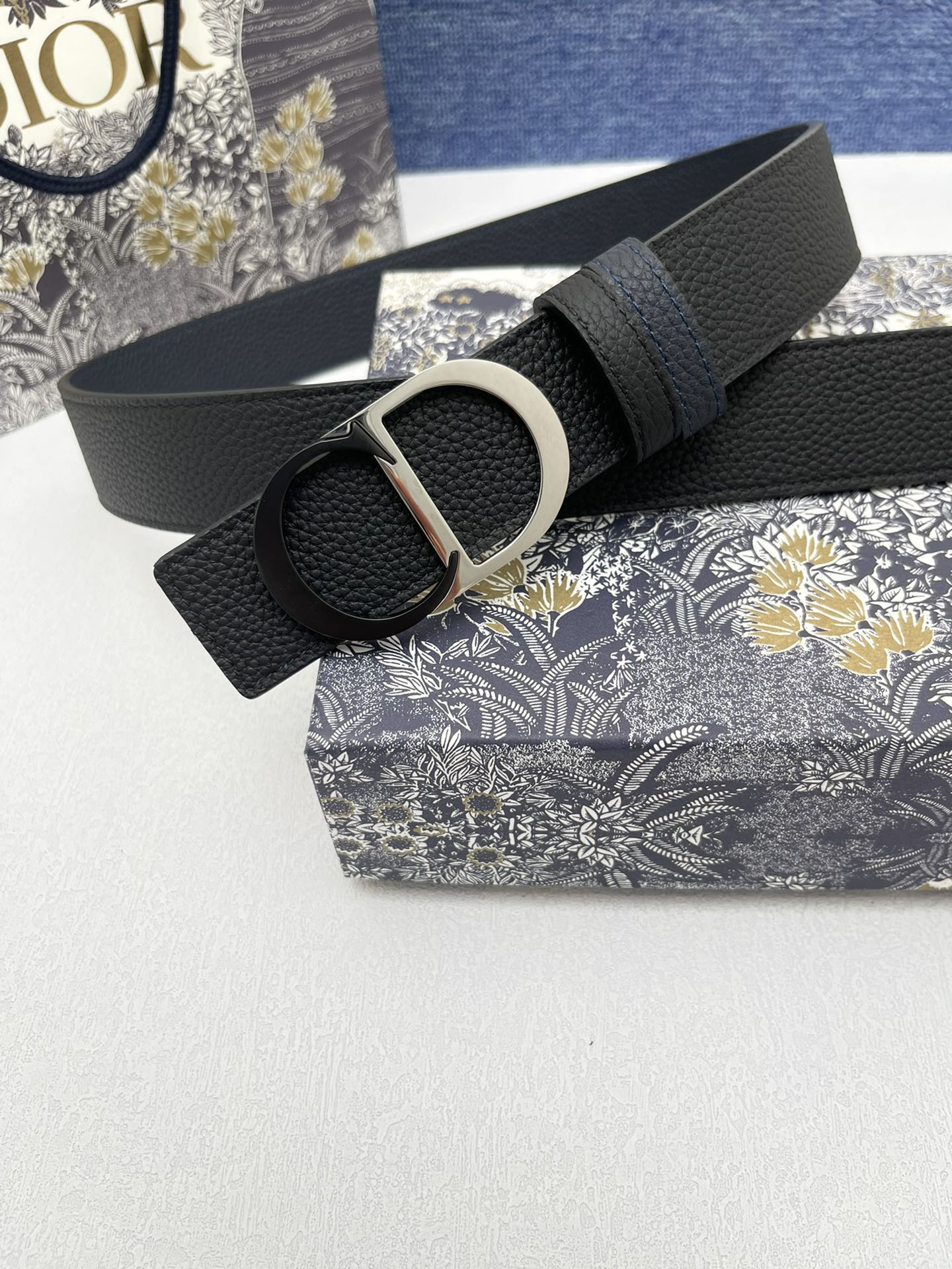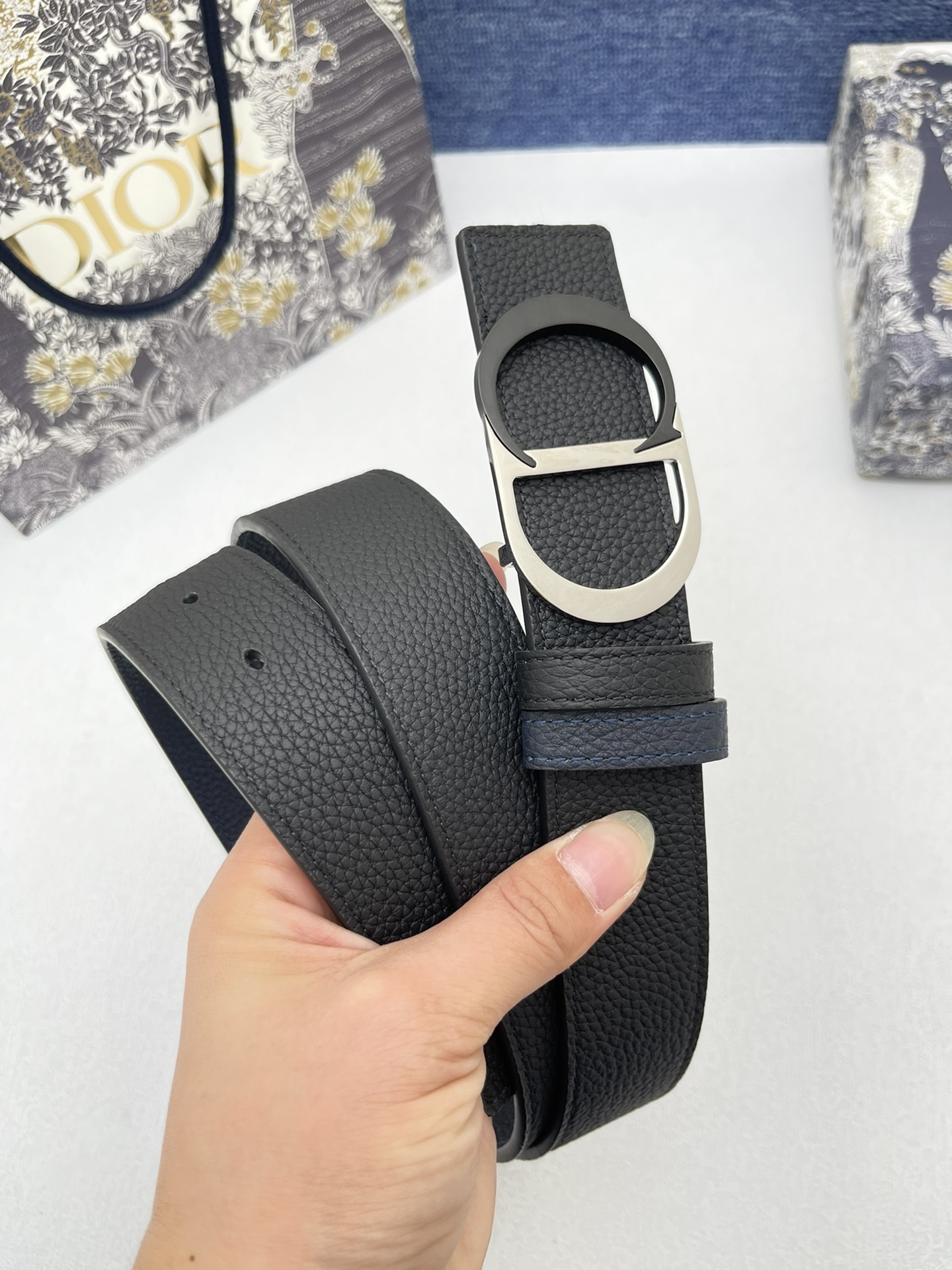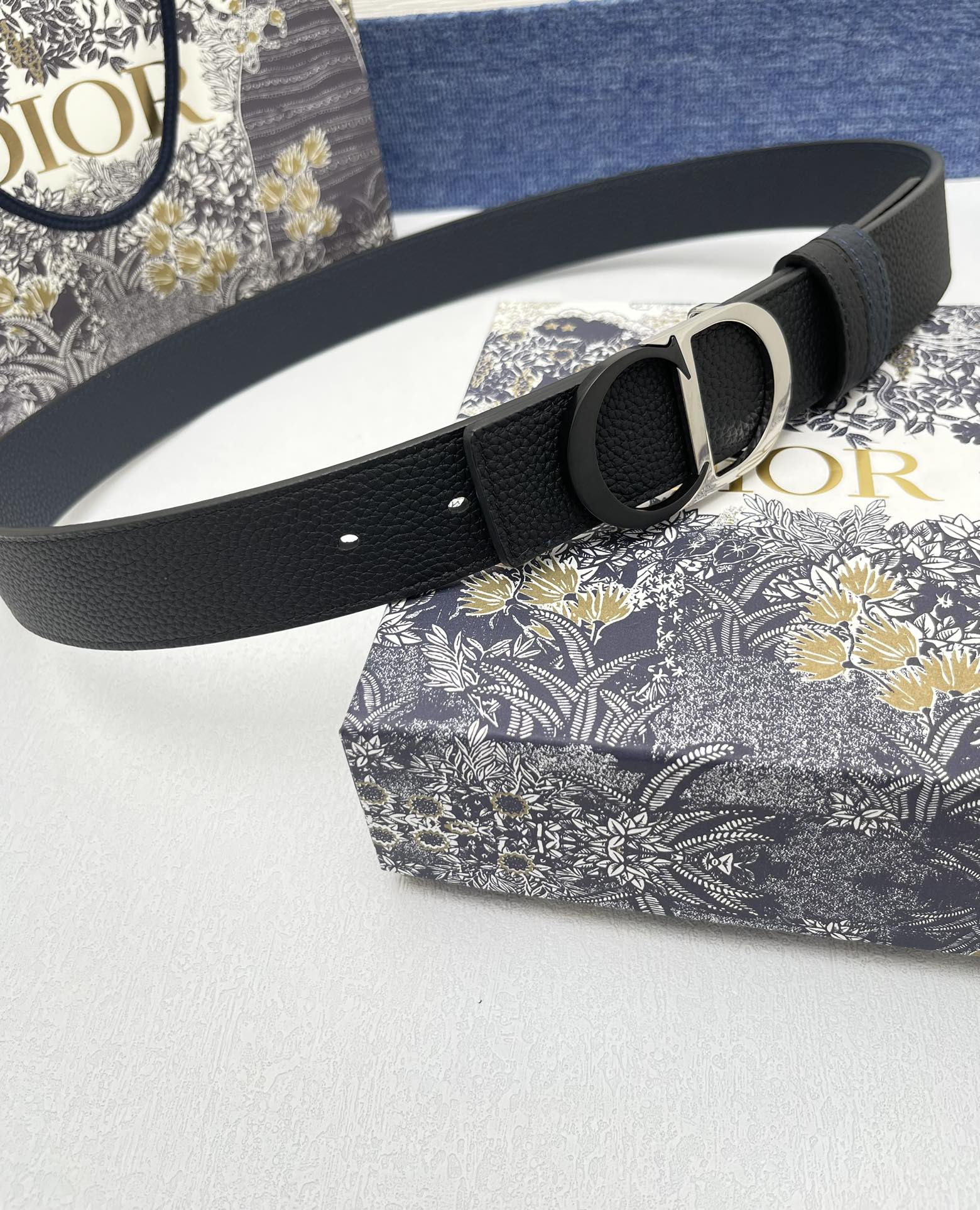 The men's Dior model is made of double-sided top-grain original factory lychee grain cowhide, paired with pure copper metal buckles, and the belt width is 3.5 centimeters