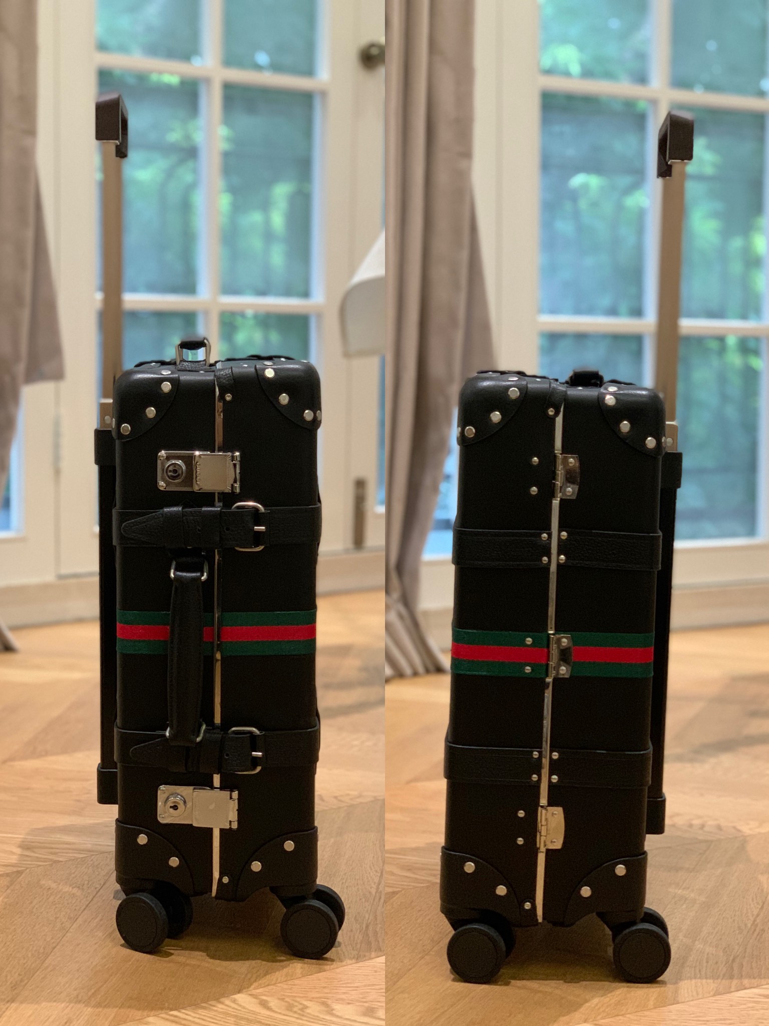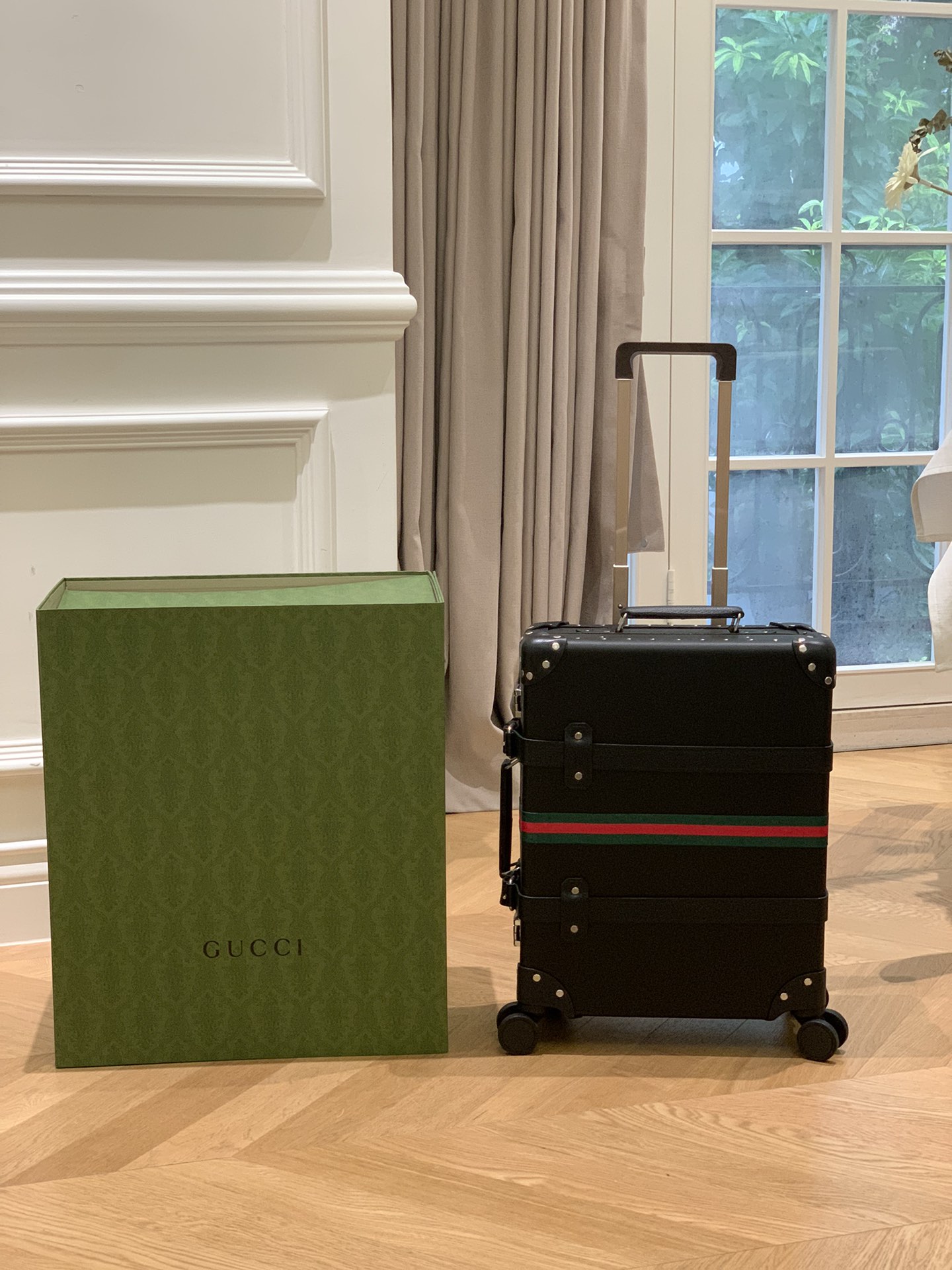 The Globe-Trotter series GG trolley case is a collaboration between GUCCi and the British royal travel case brand Globe-Trotter. It's a hit show style and a "small black room" style, and it also belongs to the counter Hidden list series Let's first talk about this century-old travel case brand. With its own unique case-making technology, the cases it creates are not only waterproof and durable, but each one also has a strong flavor The British OLD SCHOOL style, this box is no exception: The handle and the eight legs of the box are all wrapped with top-quality British cowhide and fixed with strict stitching. Whether it is the leather or the lining, everything is cut by hand by artisans 99 The iconic GG pattern of GUCCi and the bamboo handle are both integrated into it, made of rice The GG Supreme canvas in color and ebony to brown leather trim, combined with the square and square shape, has a strong retro atmosphere. This trolley case has a strong retro flavor and seems like a work of art. It can not only be used on a plane but also serve as a background for taking photos around the world during a trip. It can also store all kinds of travel supplies without any problem. The inner capacity is very large. So it is a suitcase that combines good looks, large capacity and durability!