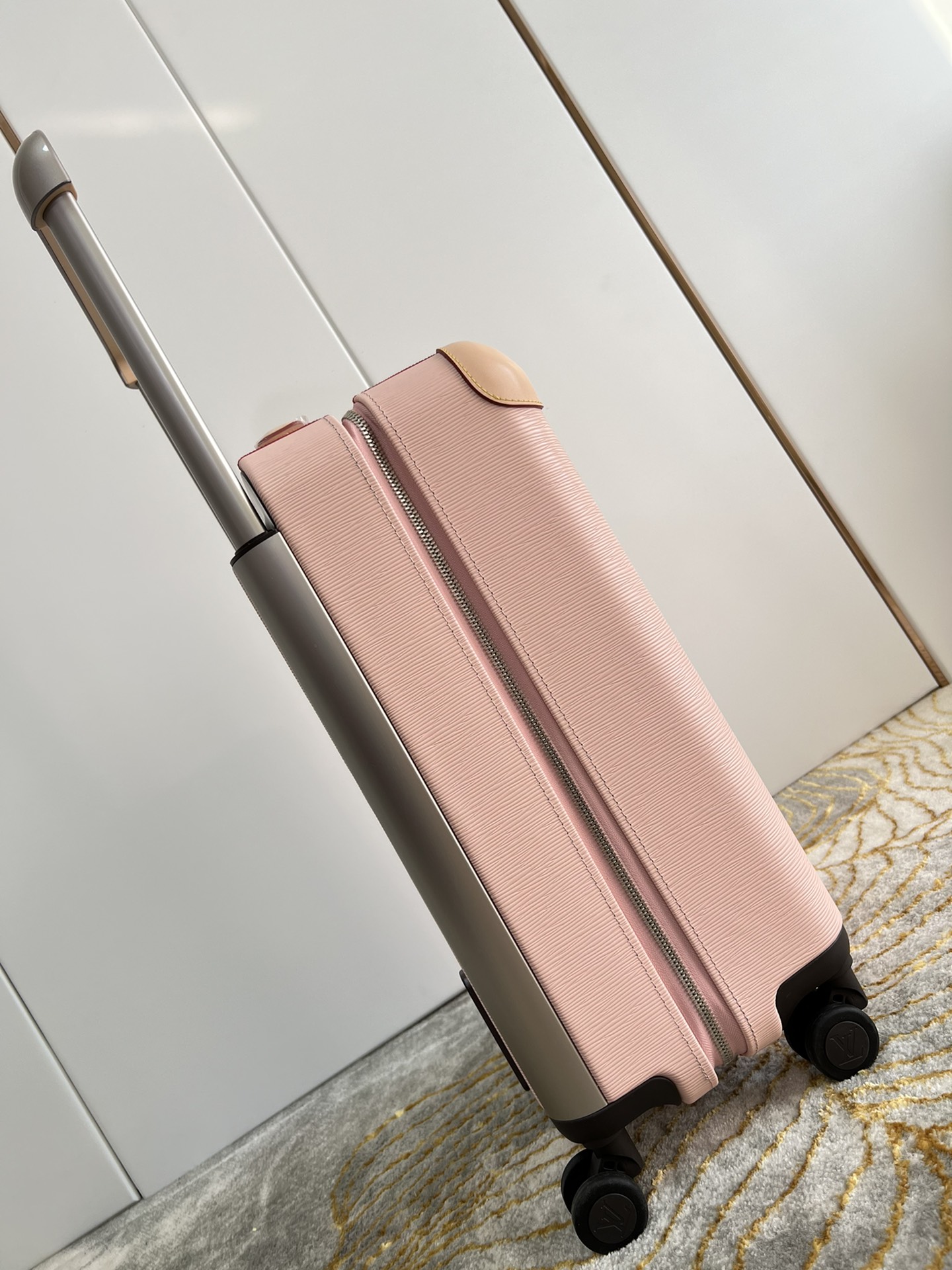 GF4343FB Exclusive real photos of the pink water ripple suitcase: The all-new Horizon suitcase revolutionizes Louis Vuitton's legendary classic with unique creativity, embellishing the iconic Monogram canvas with travel stickers and retracing the design style of the brand's traditional suitcases. The leather corner protection and the oversized external handle enrich the smart details, creating an elegant and practical travel companion. Detailed features: 35.0 x 23