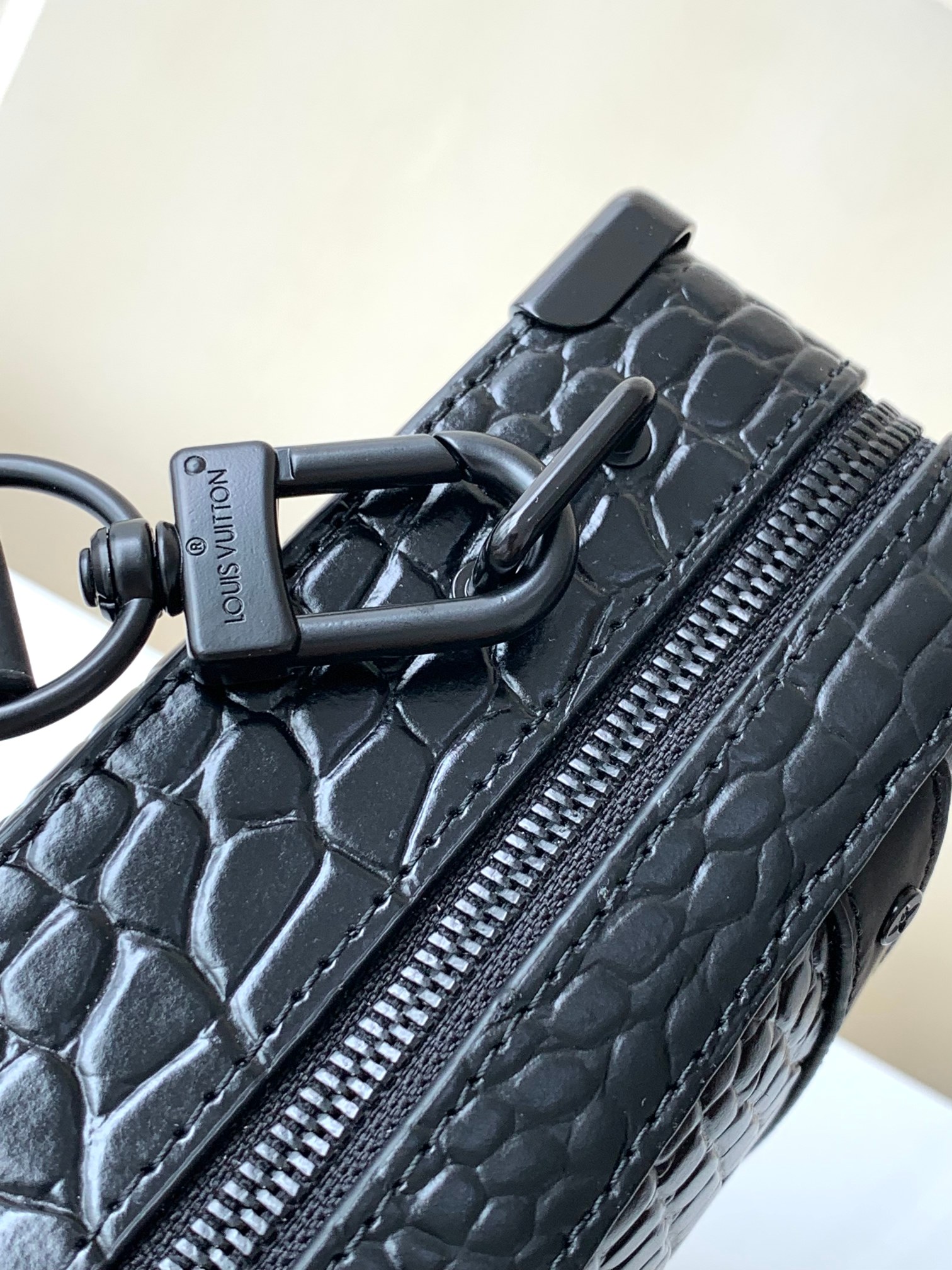 Top-quality original copy M59351 black crocodile pattern. This Handle Soft Trunk handbag is made of Monogram leather with fine embossed texture, continuing Louis Vuitton's box-making tradition with rivet corners and leather reinforcing straps. The wide opening and closing make it convenient to take out and put in items, and it is suitable for storing small electronic devices and portable needs. The neat design and detachable shoulder straps make it easy to carry. Detailed features: 21.5 x 15 x 7 centimeters (Length x height x width)