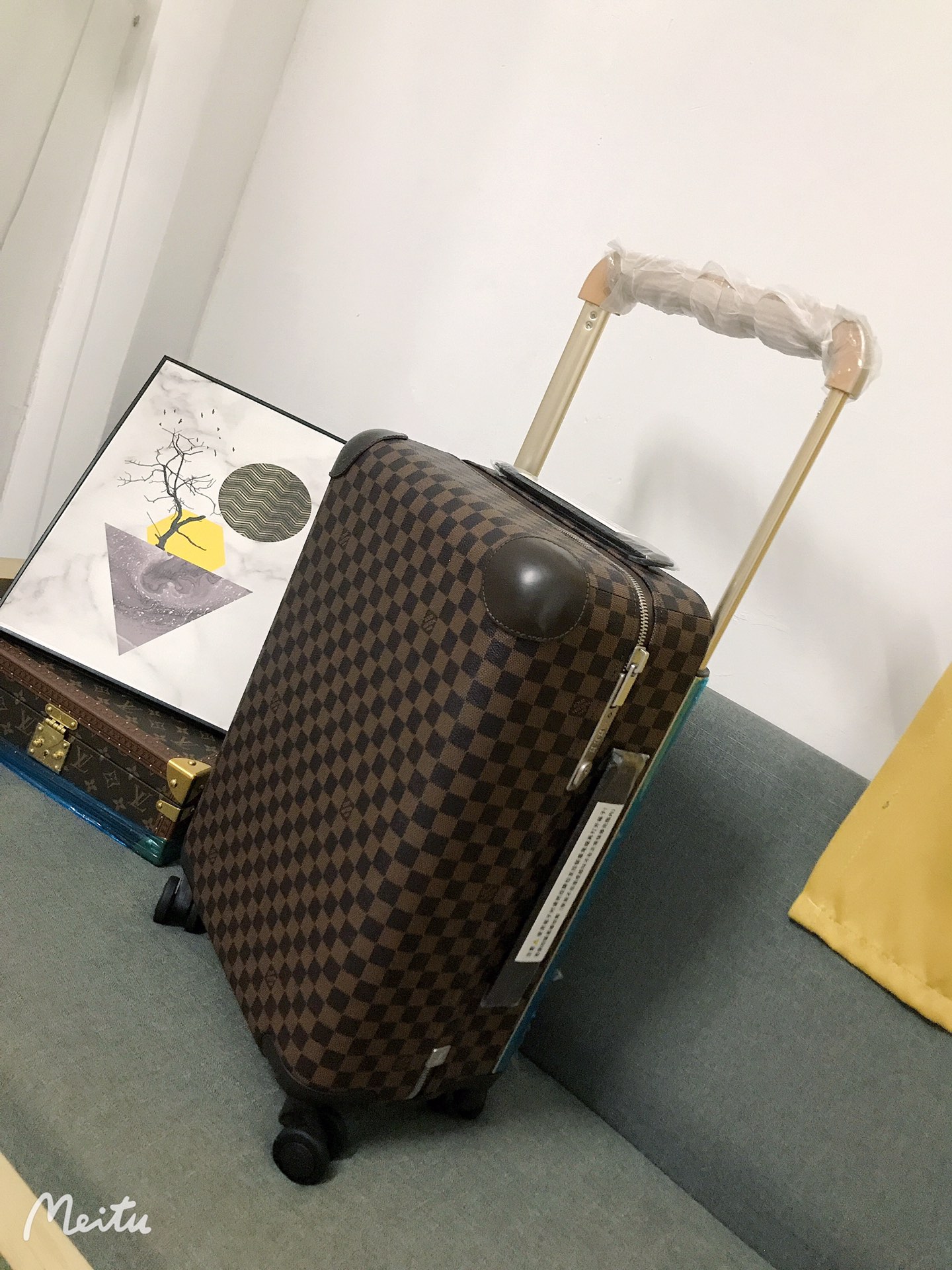 GF4343FB The all-new Horizon suitcase revolutionizes Louis Vuitton's legendary classics with individual creativity, embellishing the iconic Monogram canvas with travel stickers and retracing the brand's traditional luggage design style. The leather corner protection and the oversized external handle enrich the smart details, creating an elegant and practical travel companion. Detailed characteristics (Length