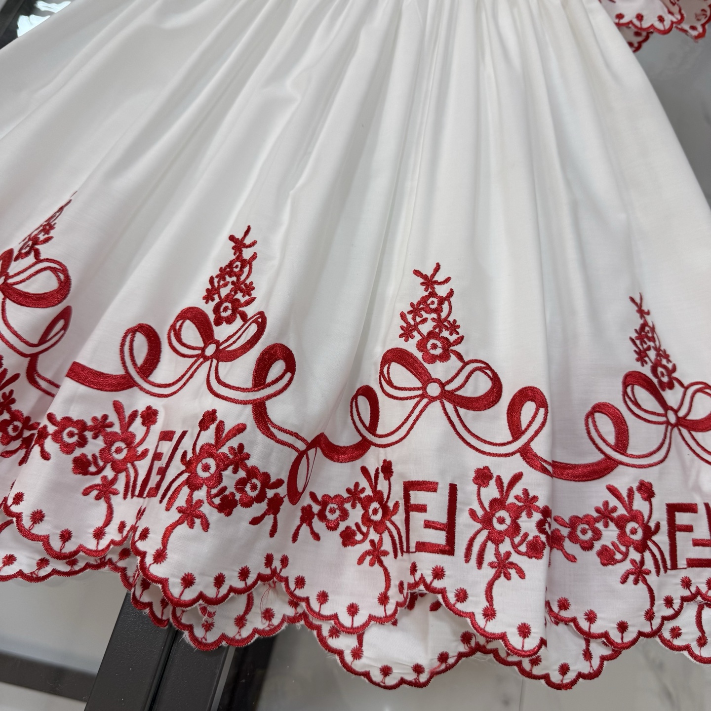 Fendi, high-end children's clothes, girls dress, double layer design, outer woven cotton, cotton, inner outer skirt FF embroidery ?? wine red color, body comfortable, good-looking, code number: 100/110/120/130/140/150 cm