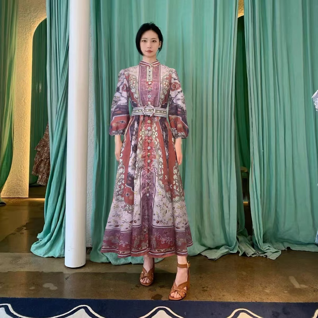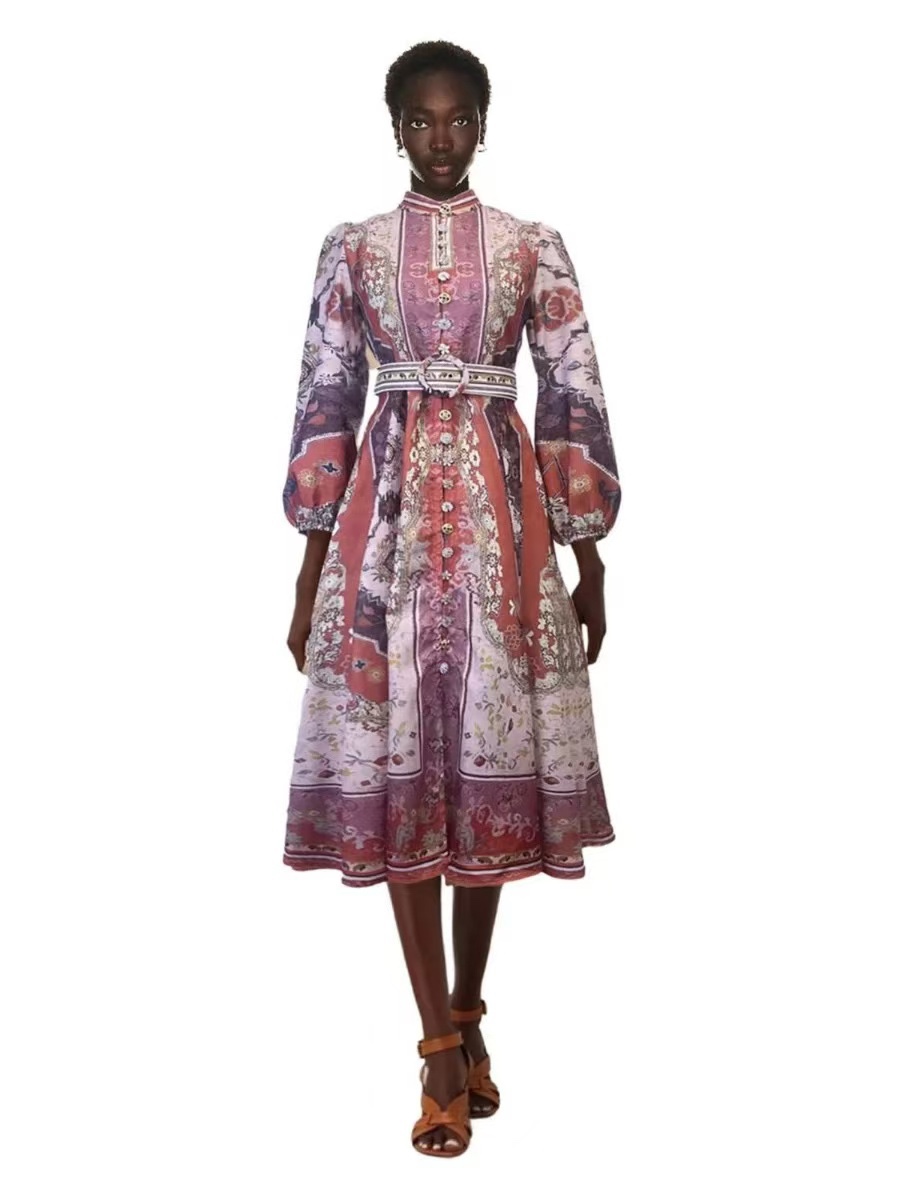 ???? New ?? Stand-up collar retro printed lantern sleeve dress Smlxl
