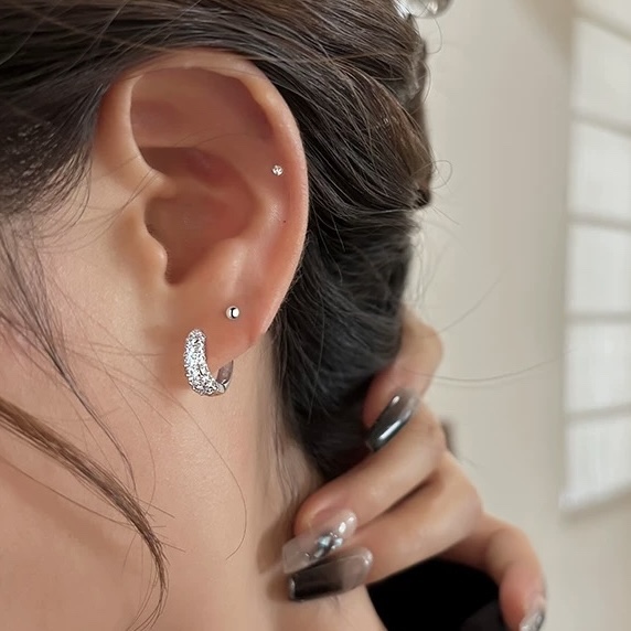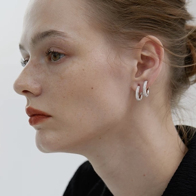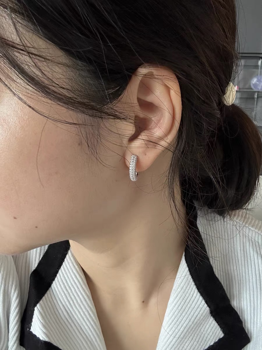 A4711 ??T family ?? five-row diamond circle full diamond stud Earrings simple, elegant, versatile, non-fade, non-allergenic S925 pure silver electroplated thick gold fashionable, timeless trendy item Pure silver stud earrings Earrings/Ear studs