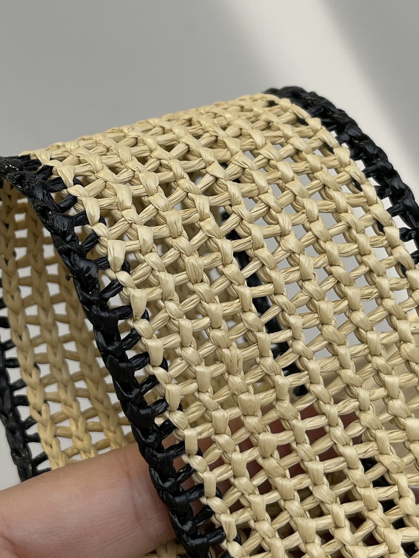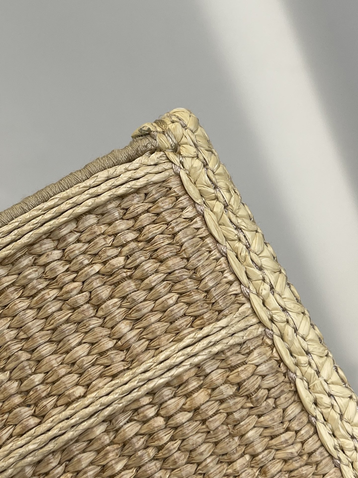 Let's take a look at the surface of the bag. It is hand-woven from tough raffia grass. The woven logo is very smooth. Overall, it is very regular and solid. Every knot and every line is very exquisite and smooth. The texture of the weaving is so extraordinary and refined that it will make your eyes light up at first sight!