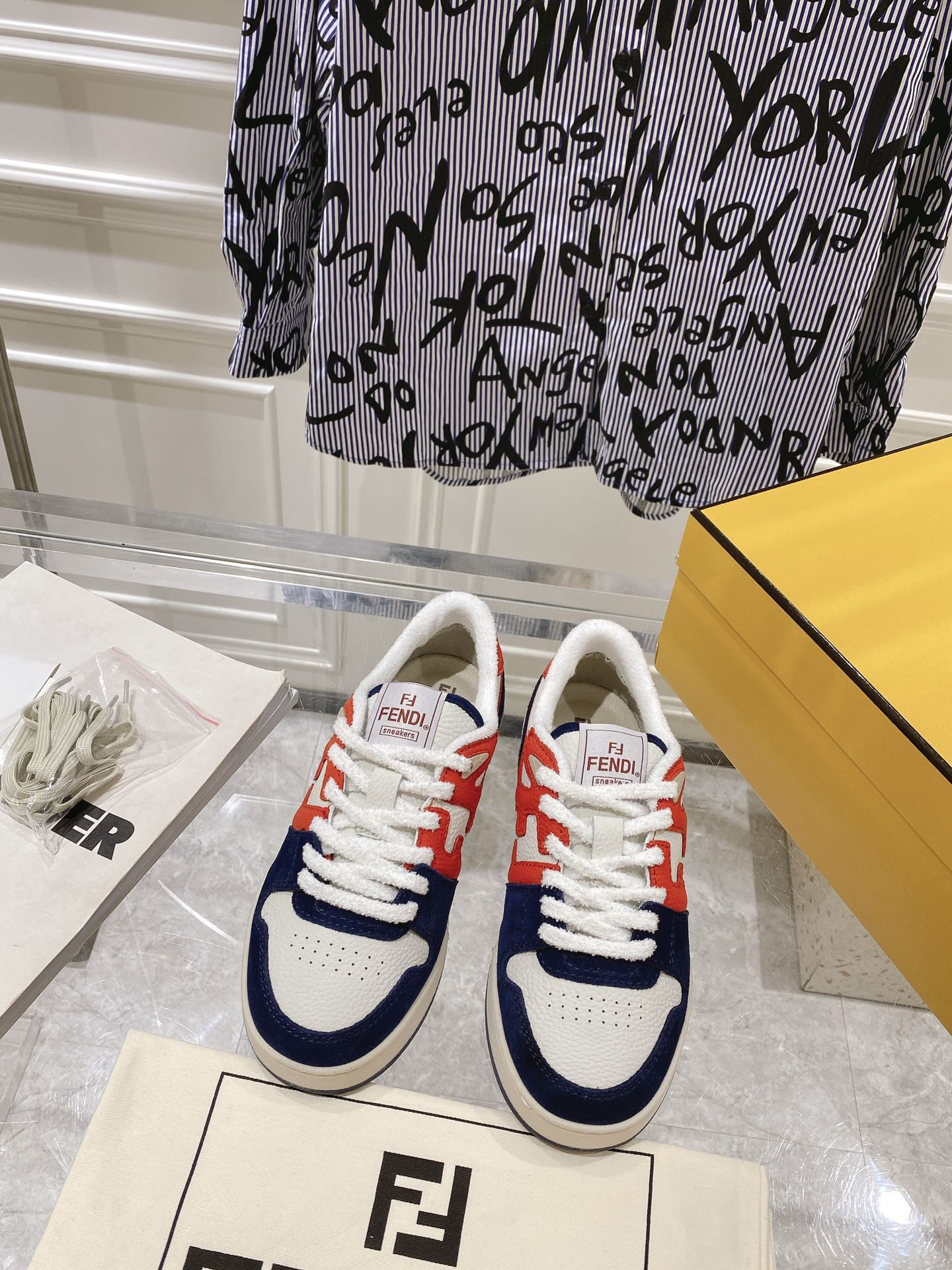 Model No. #3008??????Fendi/ Match?? New sports sneakers ??, crafted by Kim Jones, made of leather and suede, perfectly recreating the retro style. The overall design is simple and casual, with classic FF pattern stitching on the side and understated luxury with brand letter patterns on the sole. Perfect match, unisex style [Rose] Size: 35-44, 45.46, custom-made