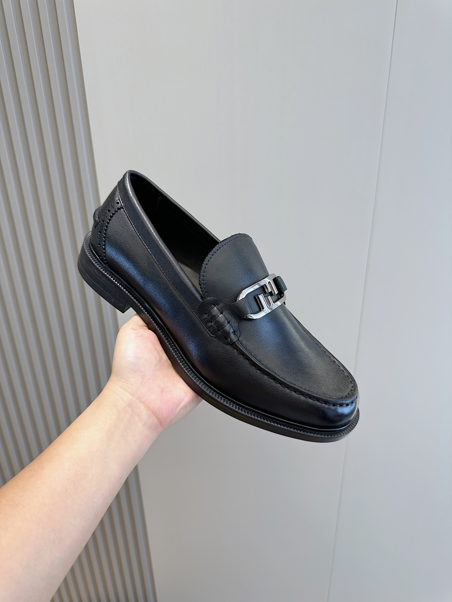 Model #4005??????Fendi black cowhide loafers for men It is decorated with FF pattern and has a silver finish metal. Imported cowhide material, cowhide lining, original factory outsole Size:39-44 (custom-made at 38.45)