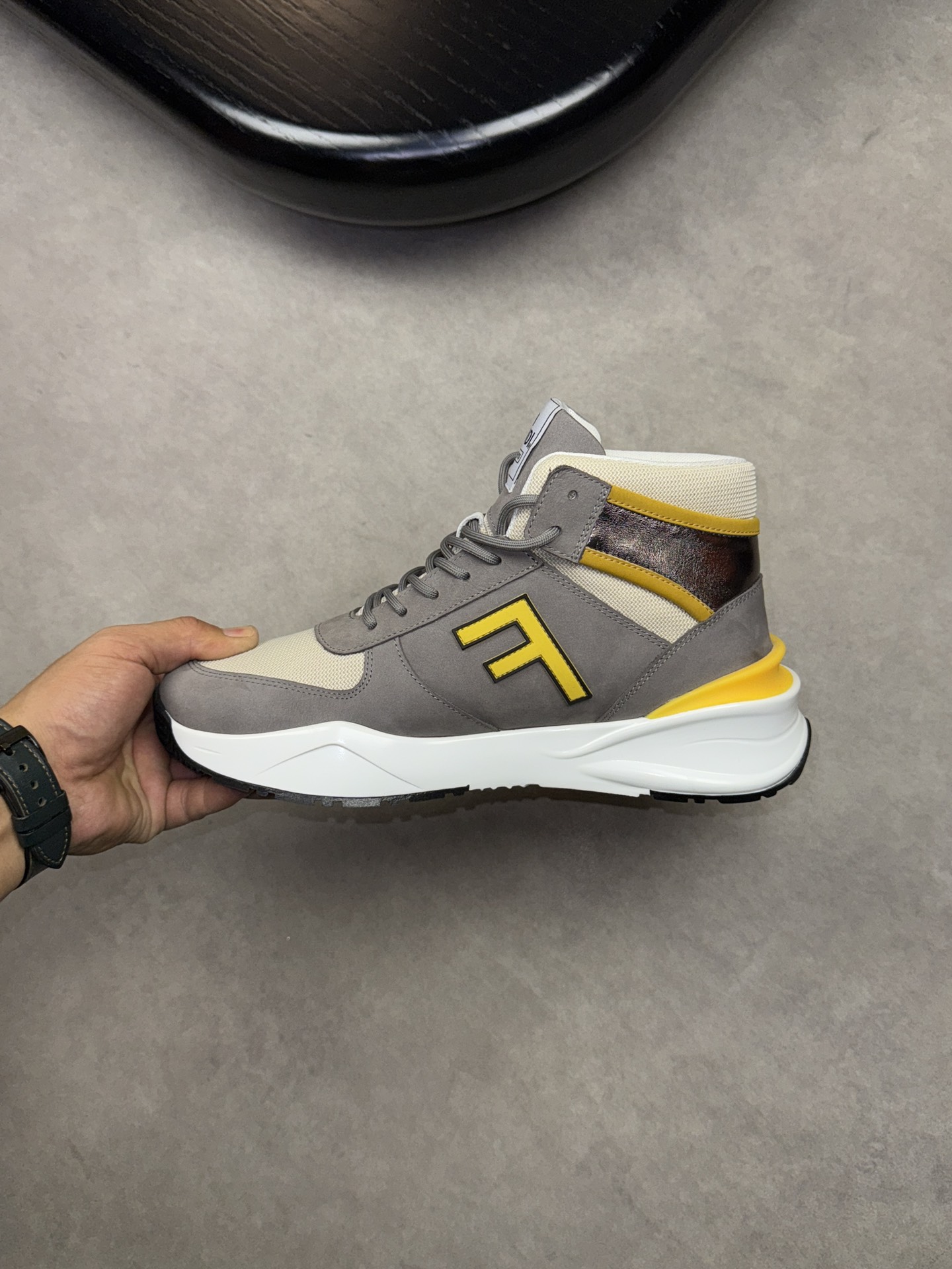 FENDI #5001?????? - HIGH-END quality ORIGINAL single high top ?????? casual sports shoes - Upper: ?? brushed calfskin, brand high mercerized canvas, body stitched brand totem: perfect stitching - Inside: Brand canvas fabric - Outsole: TPU foam