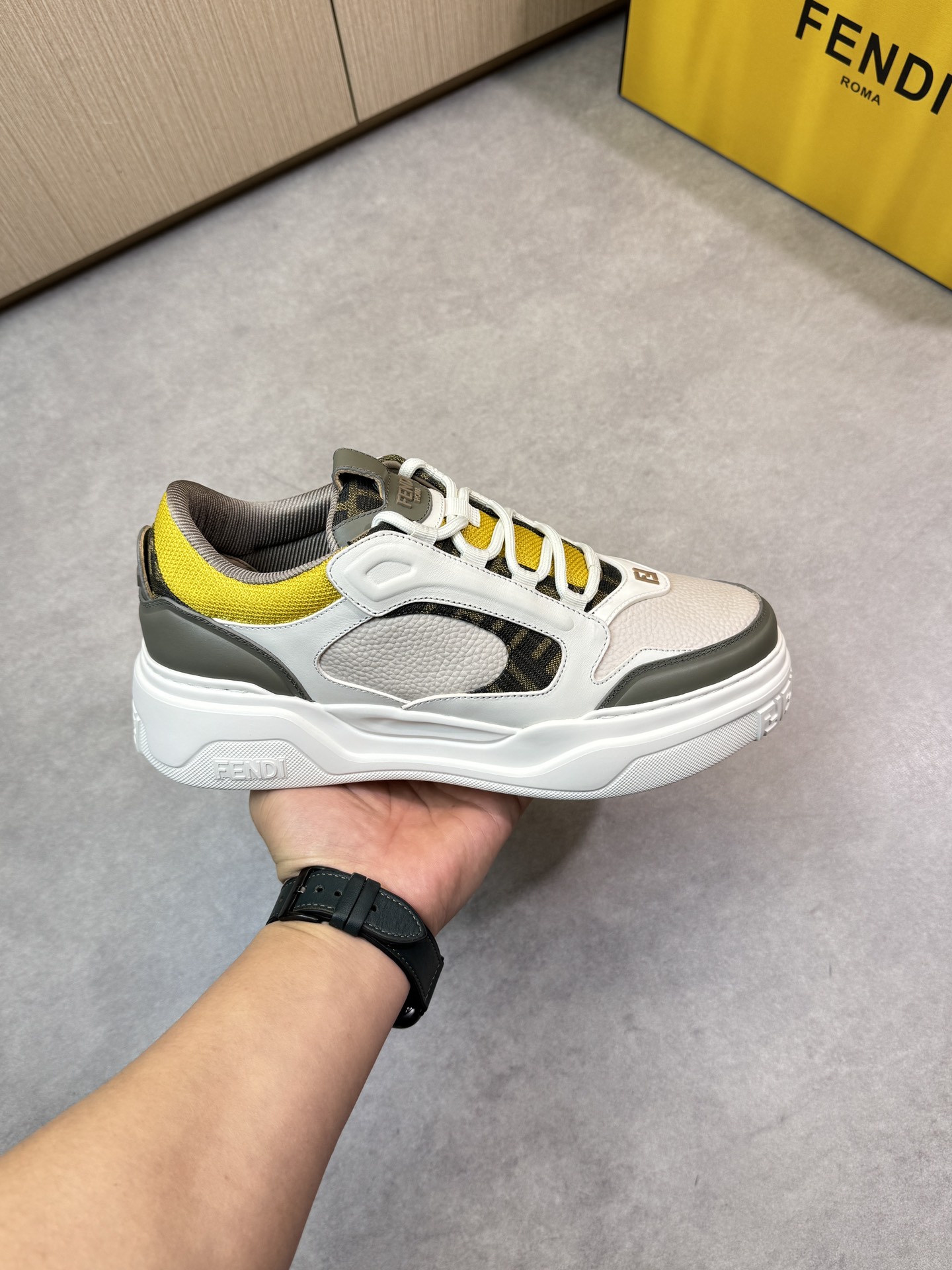 FENDI #4006?????? - HIGH-END quality original single ?????? casual sports shoes - Upper: ?? Napa calfskin, lychee calfskin, tongue. Heel; Injection-molded plastic modules for brand logos - Inside: Brand canvas - Outsole: Ultra-light TPR foam