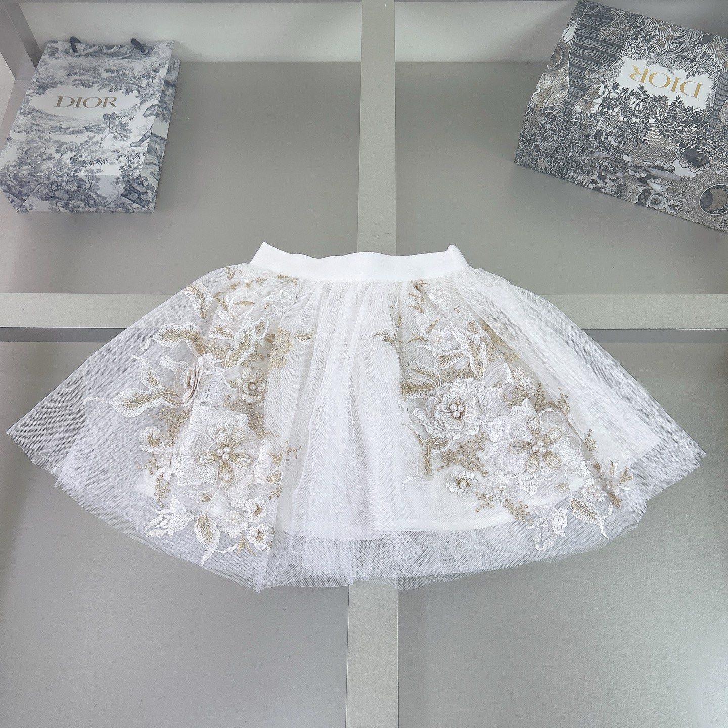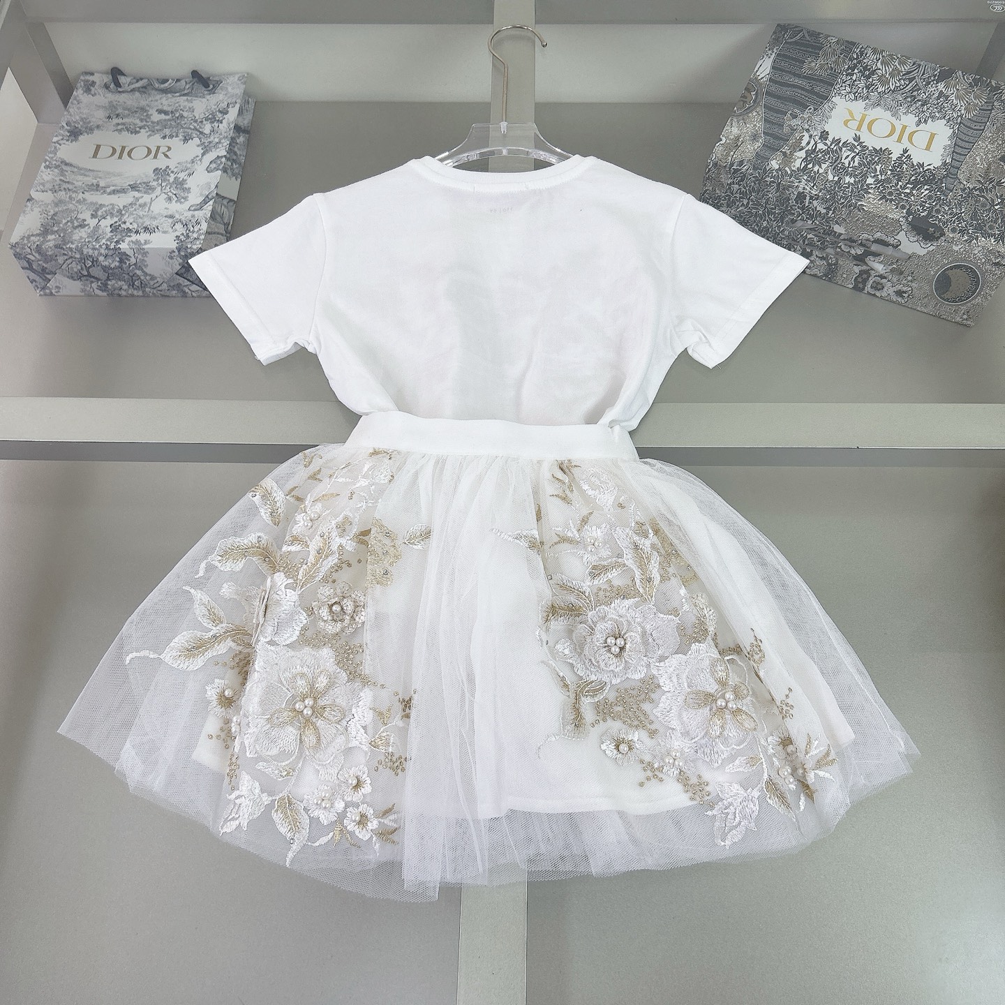 Dior Dior, high-end children's wear, in the girl's skirt, all hand custom, embroidered gold embroidered gauze skirt, T-shirt + D body comfortable, good-looking, code number: 100/110/120/130/140/150/160 cm