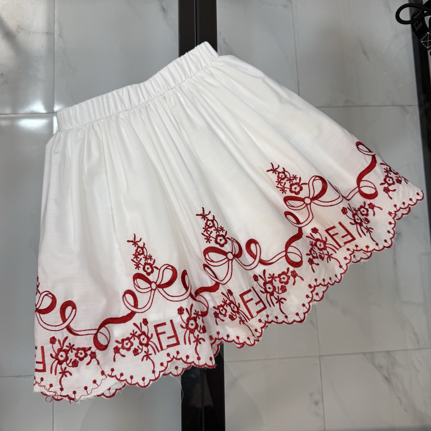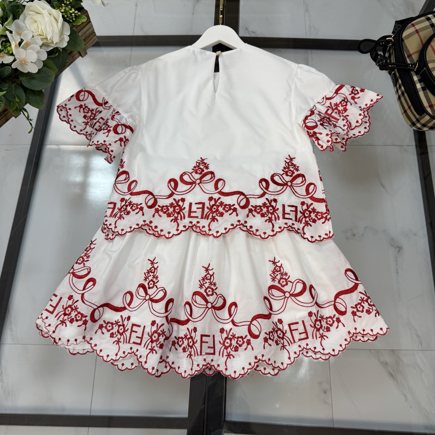 Fendi, high-end children's clothes, girls dress, double layer design, outer woven cotton, cotton, inner outer skirt FF embroidery ?? wine red color, body comfortable, good-looking, code number: 100/110/120/130/140/150 cm