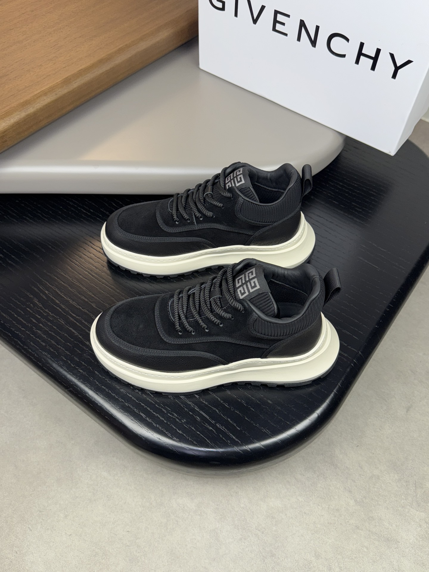 GIVENCHY l #4007?????? - HIGH-END quality original single ?????? mid-top casual sports shoes "Shoe upper" ?? Napa calfskin, fleece calfskin, striped fabric at the top of the shoe covered with sponge, brand webbing at the back, brand webbing at the top of the shoe - Inside: Water-dyed cowhide - Outsole: Ultra-light TPU foam. Rubber Two-color formed outsole - Ultra-high quality control