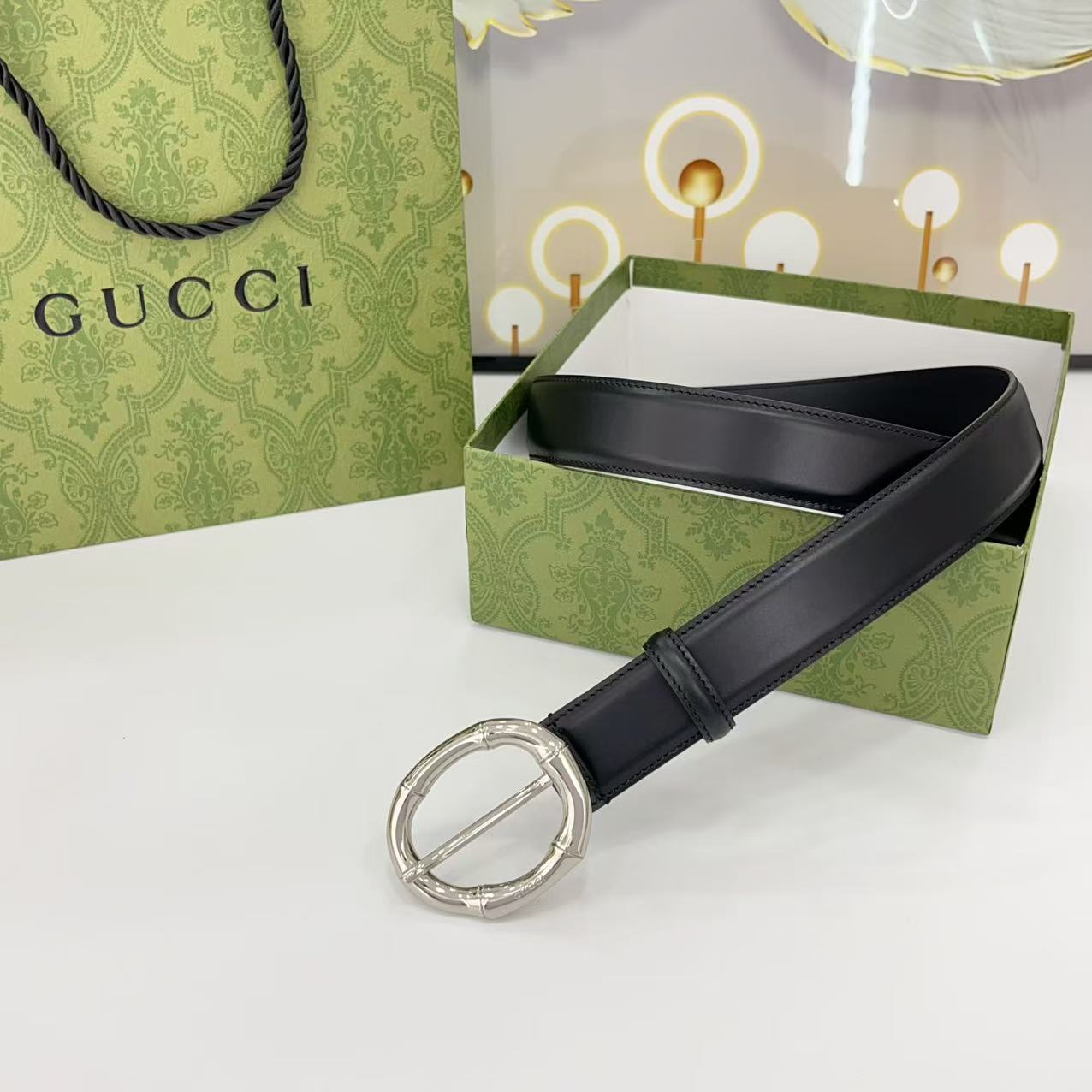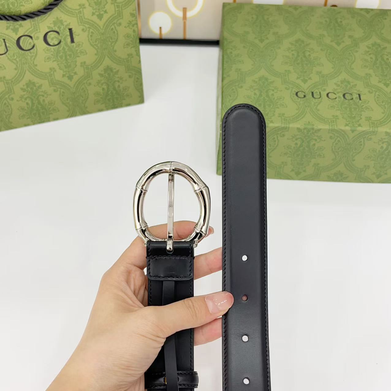 Gucci women's new bamboo buckle with double-sided cowhide and copper buckle, 3.0 cm wide Yards: 75 80 85 90 95 100 105 euros