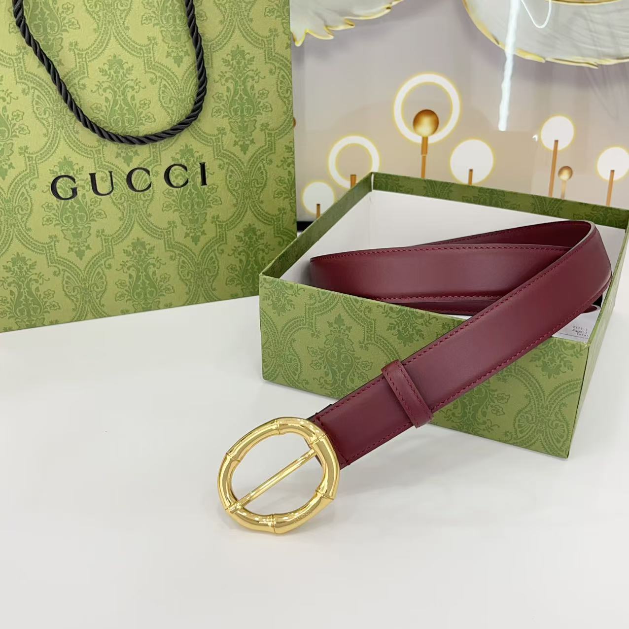 Gucci women's new bamboo buckle with double-sided cowhide and copper buckle, 3.0 cm wide Yards: 75 80 85 90 95 100 105 euros