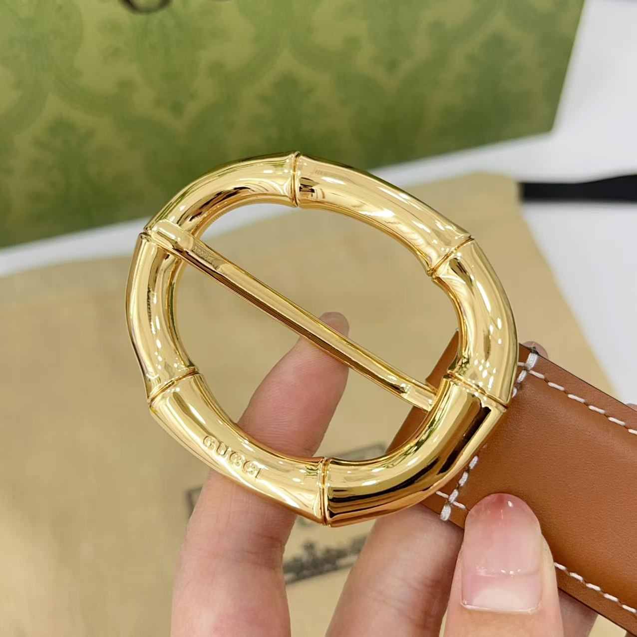 Gucci women's new bamboo buckle with double-sided cowhide and copper buckle, 3.0 cm wide Yards: 75 80 85 90 95 100 105 euros