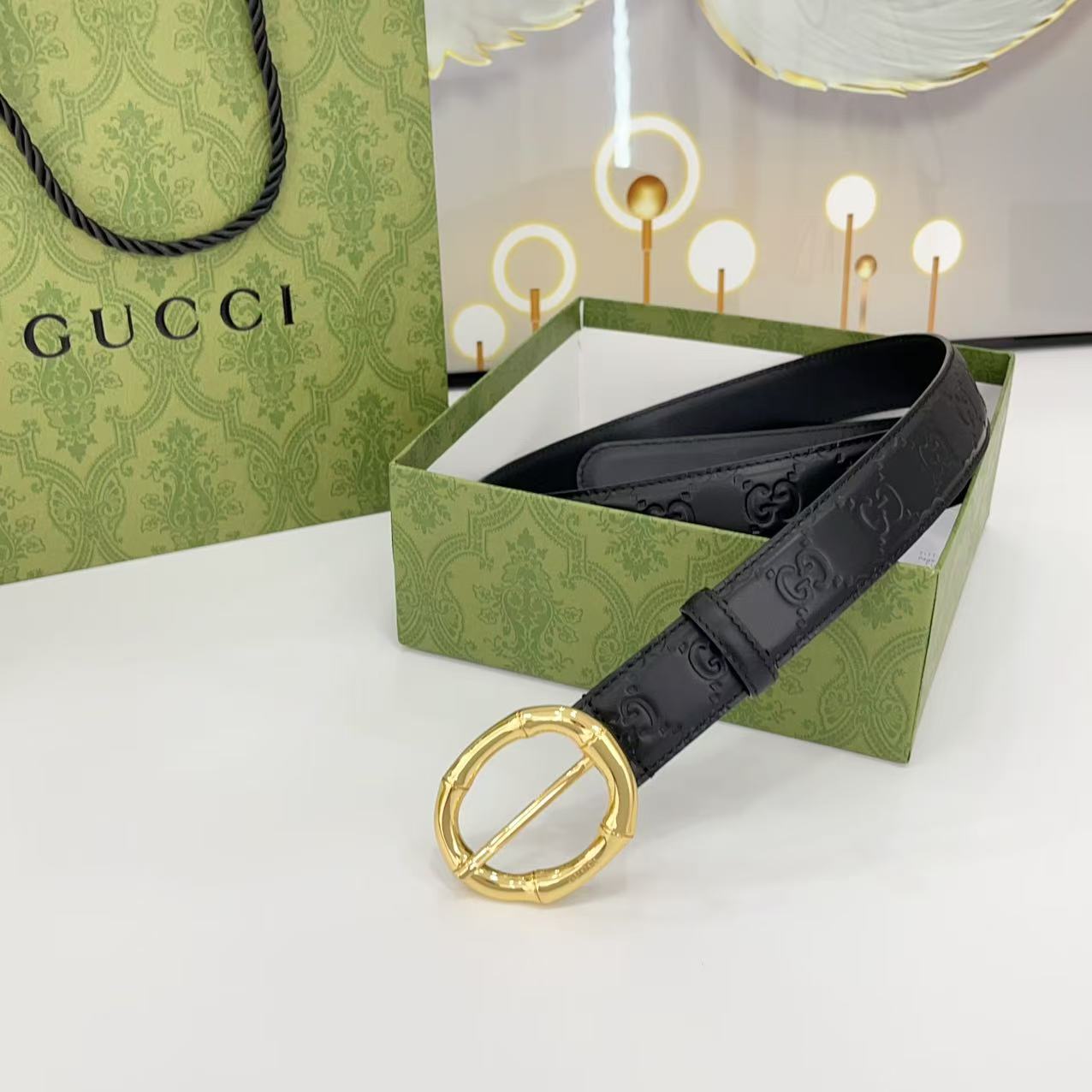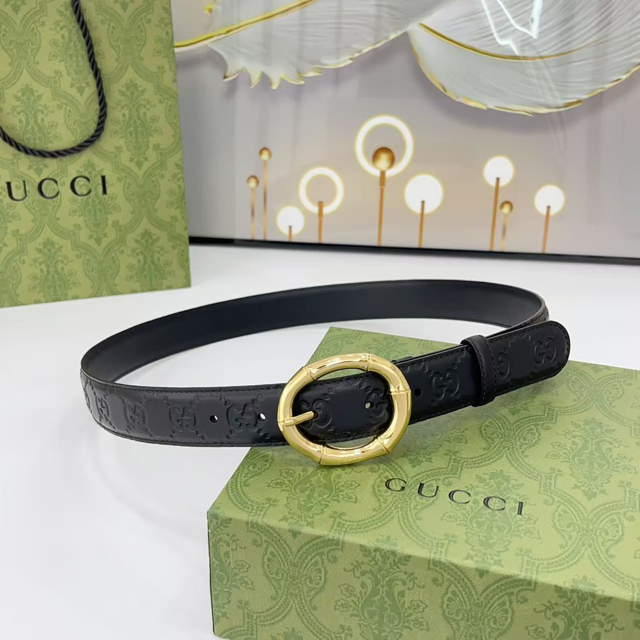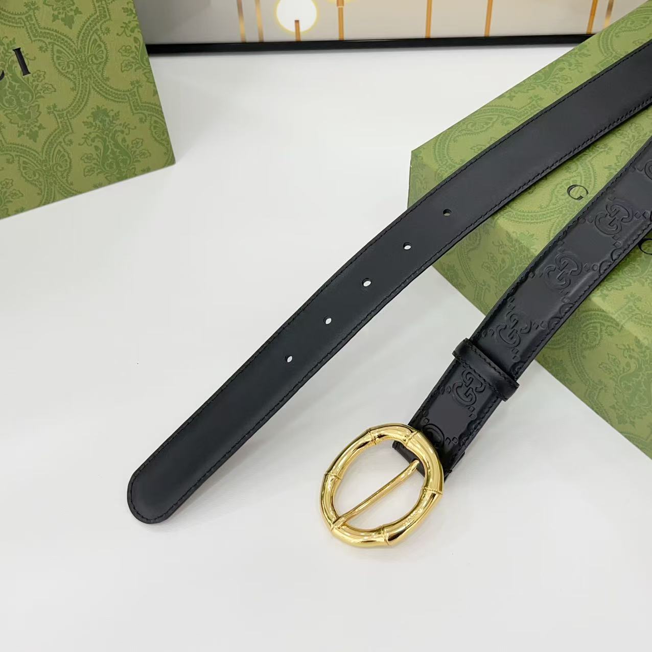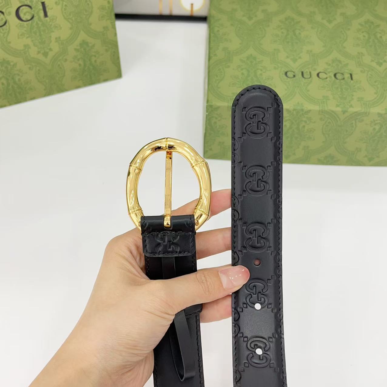 Gucci women's new bamboo buckle with double-sided cowhide and copper buckle, 3.0 cm wide Yards: 75 80 85 90 95 100 105 euros
