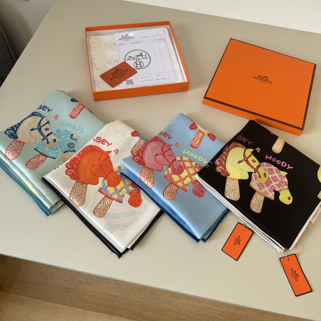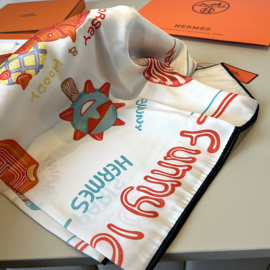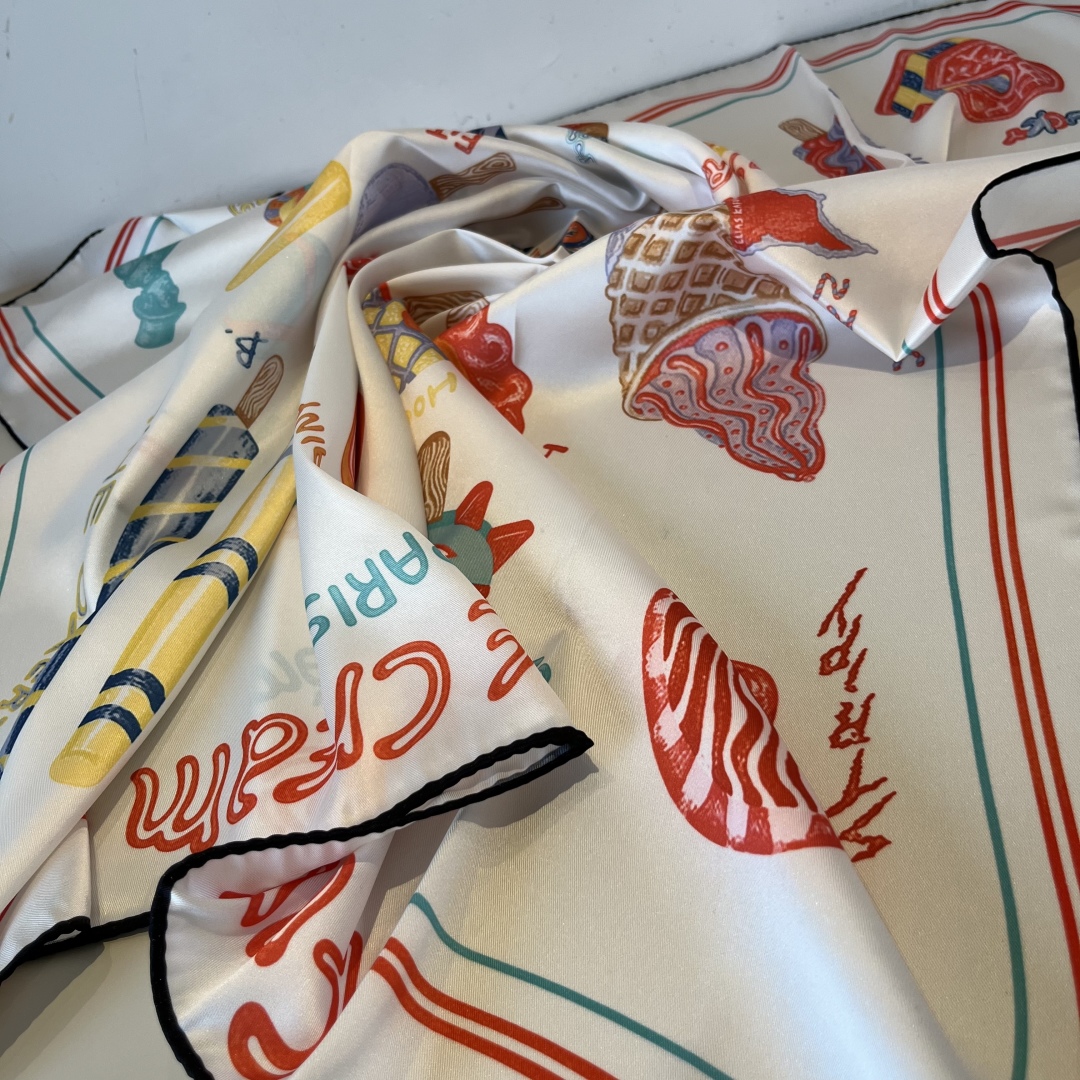Hermes Silk Handkerchief (100% mulberry silk) [Fun Ice Cream] The designer Elias Kafouros interwove and collided lightness, boldness and endless playfulness in the handkerchief, immerging himself in the silk with charming texture. Wear this handkerchief in a versatile, creative and playful way to showcase a fashionable, modern and relaxed style. Size:90x90cm