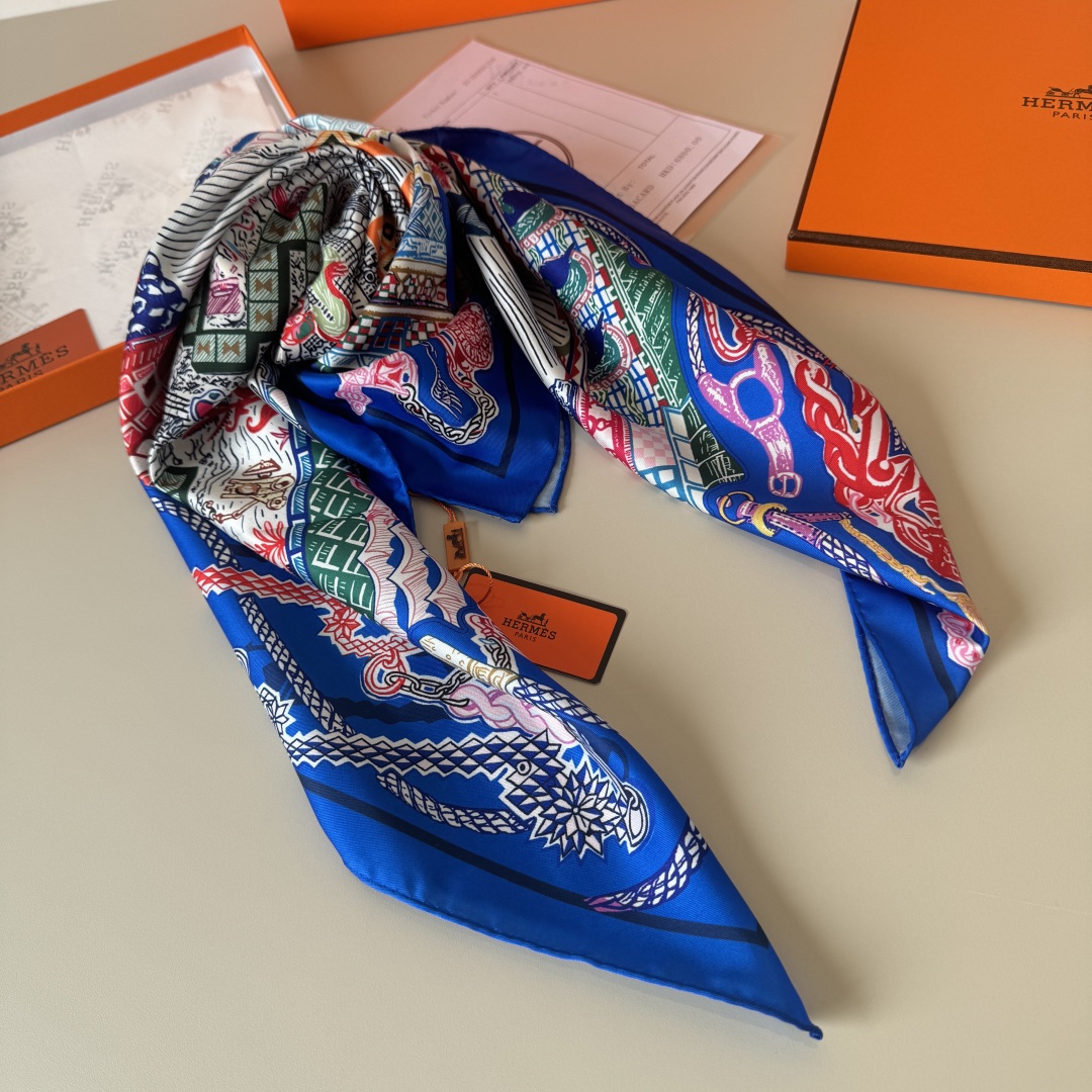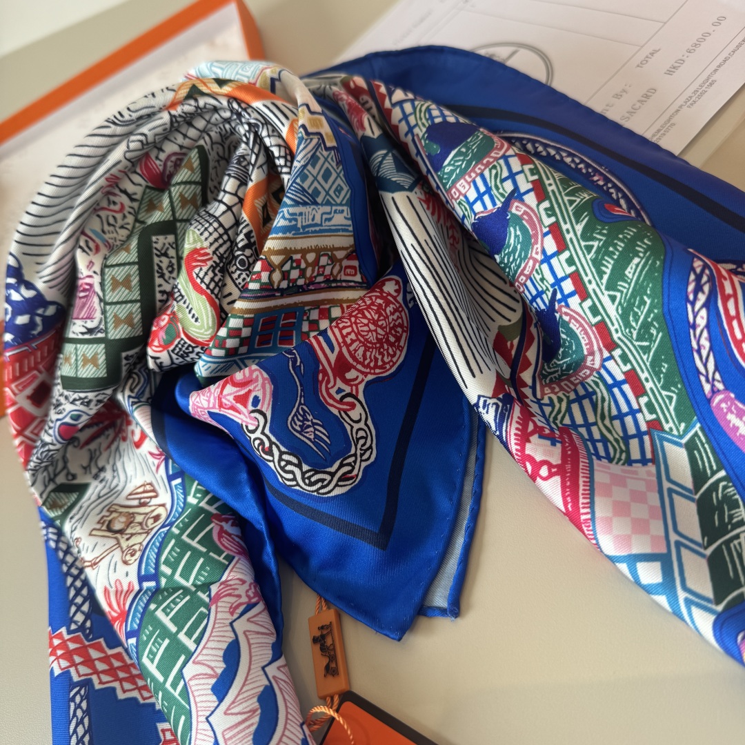 The Hermes handkerchief "Silk Scarf Adventure" is simply stunning. With its dreamy design, it has become a masterpiece in the private collections of countless collectors! Size: 90*90cm 100% silk