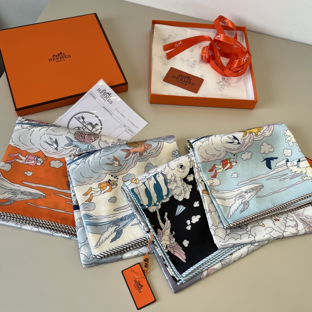 The Hermes handkerchief "My World in the Clouds" is simply stunning. With its dreamy design, it has become a masterpiece in the private collections of countless collectors! Size: 90*90cm 100% silk