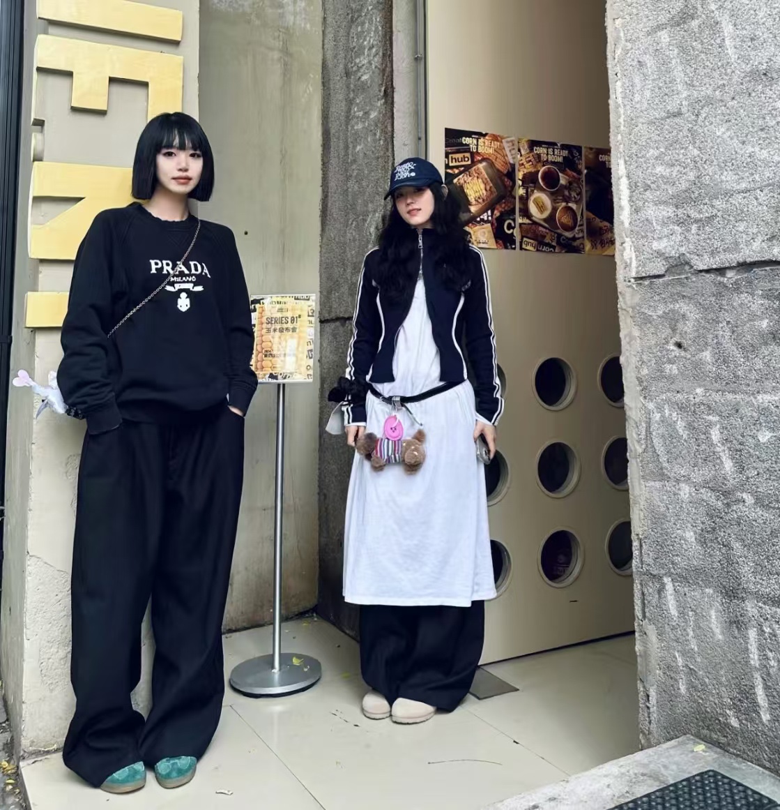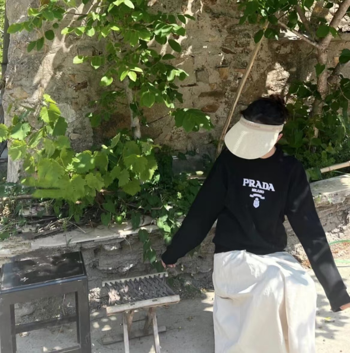 PRADA/ Prada 24Fw toothbrush embroidered logo casual round-neck sweatshirt wearing effect #