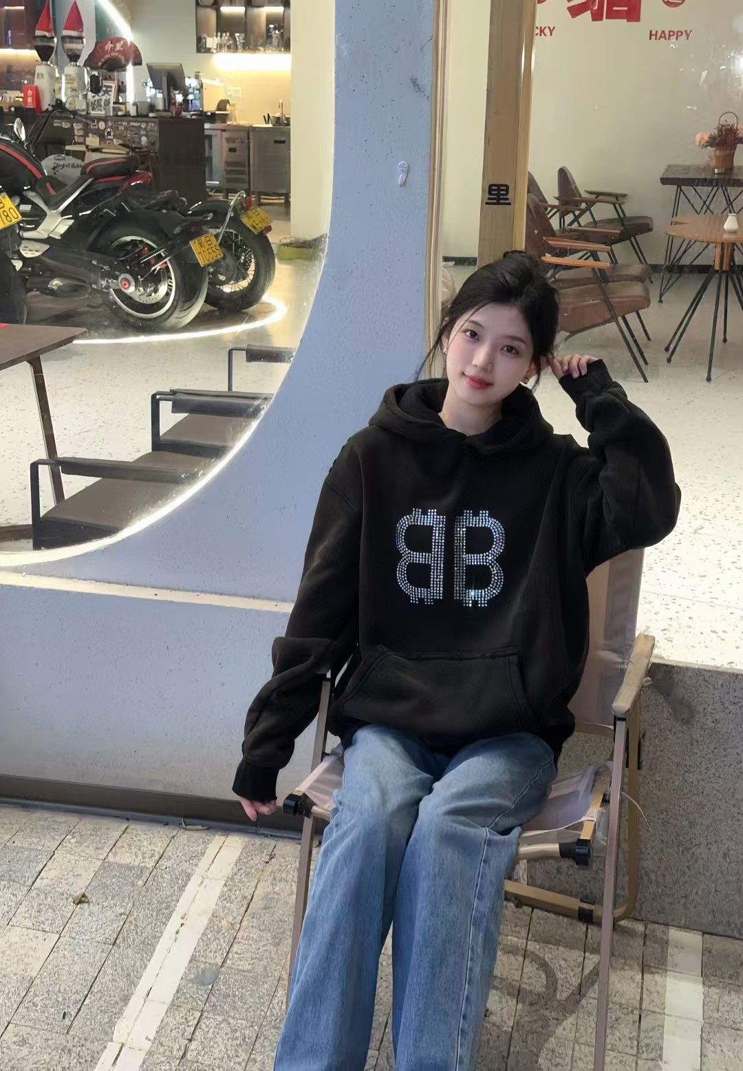 Balenciaga/ Balenciaga 24Fw Double B Bitcoin diamond ironing and Fleece hooded sweatshirt wearing effect #