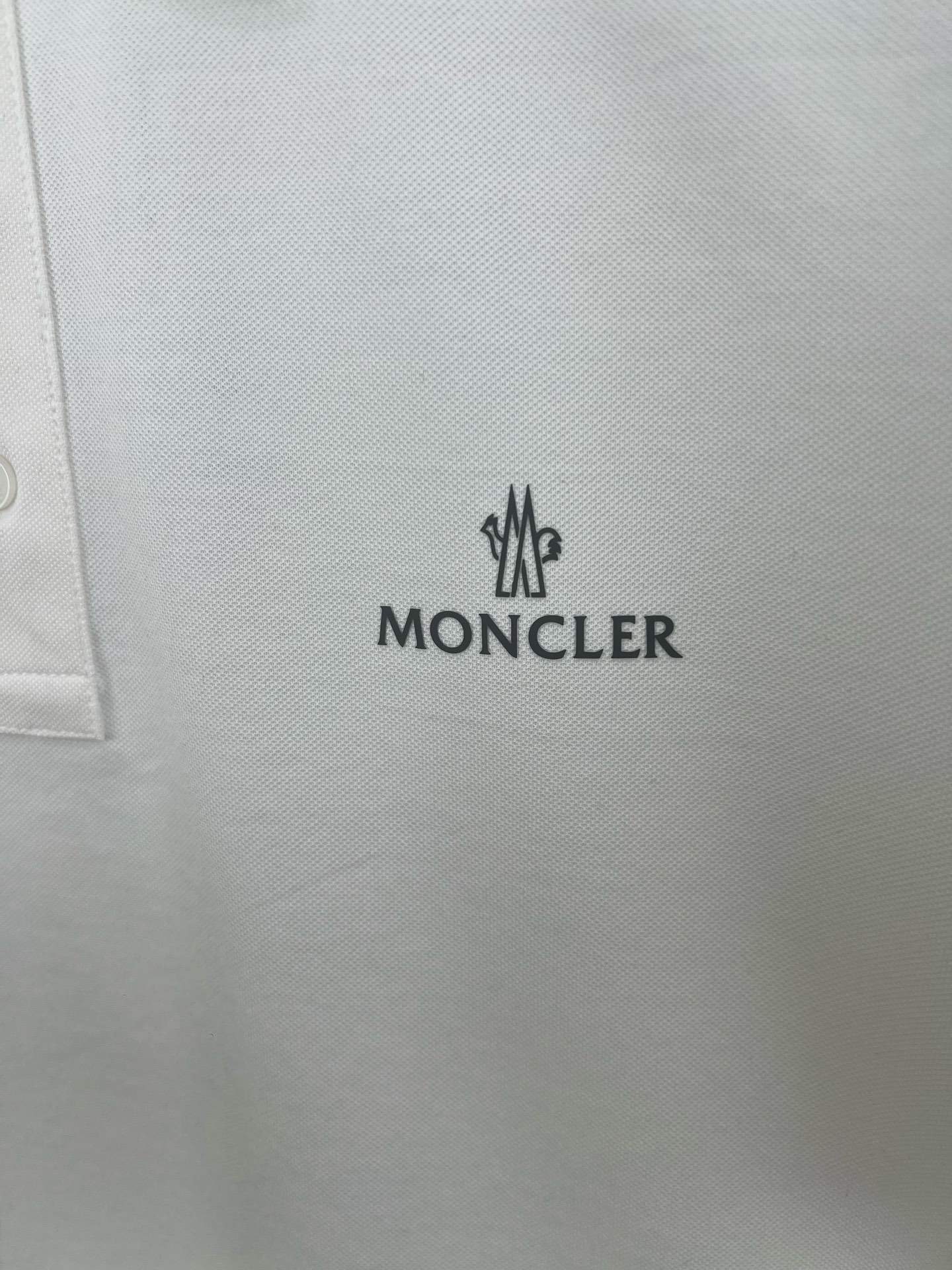 Moncler's new Spring/Summer 25 grey letter-printed logo Polo shirt features a three-button lapel at the neckline and a classic felt-embroidered emblem on the left sleeve. It is made of custom-made 60-count double mercerized pearl cotton fabric. Black and white M ~ XXXL