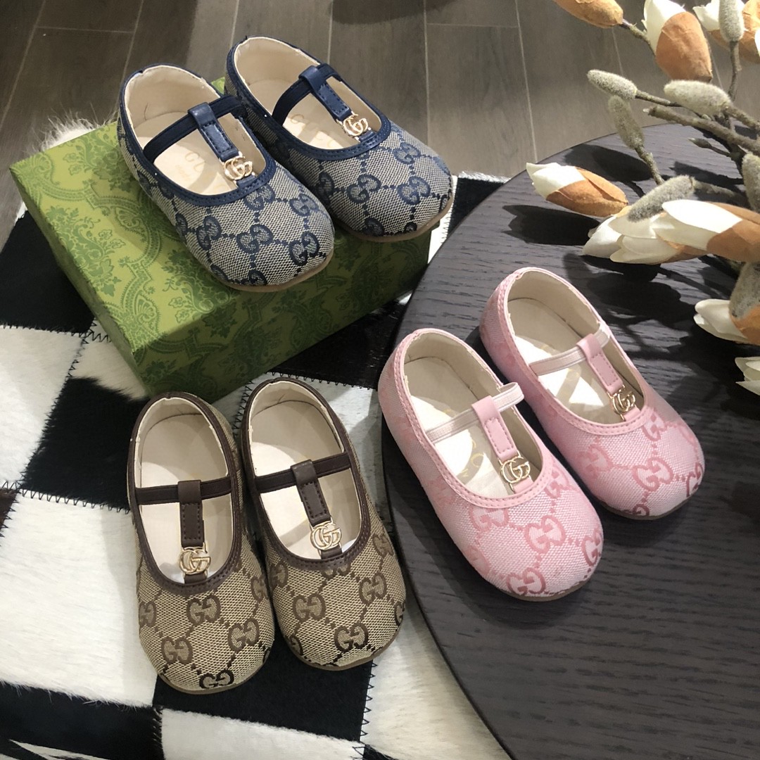 Reservation for 4 days! Gucci, Gucci, high-end children's clothing, girls' princess shoes, rubber band design, leather and custom classic check, comfortable and good-looking to wear, size: 20-25