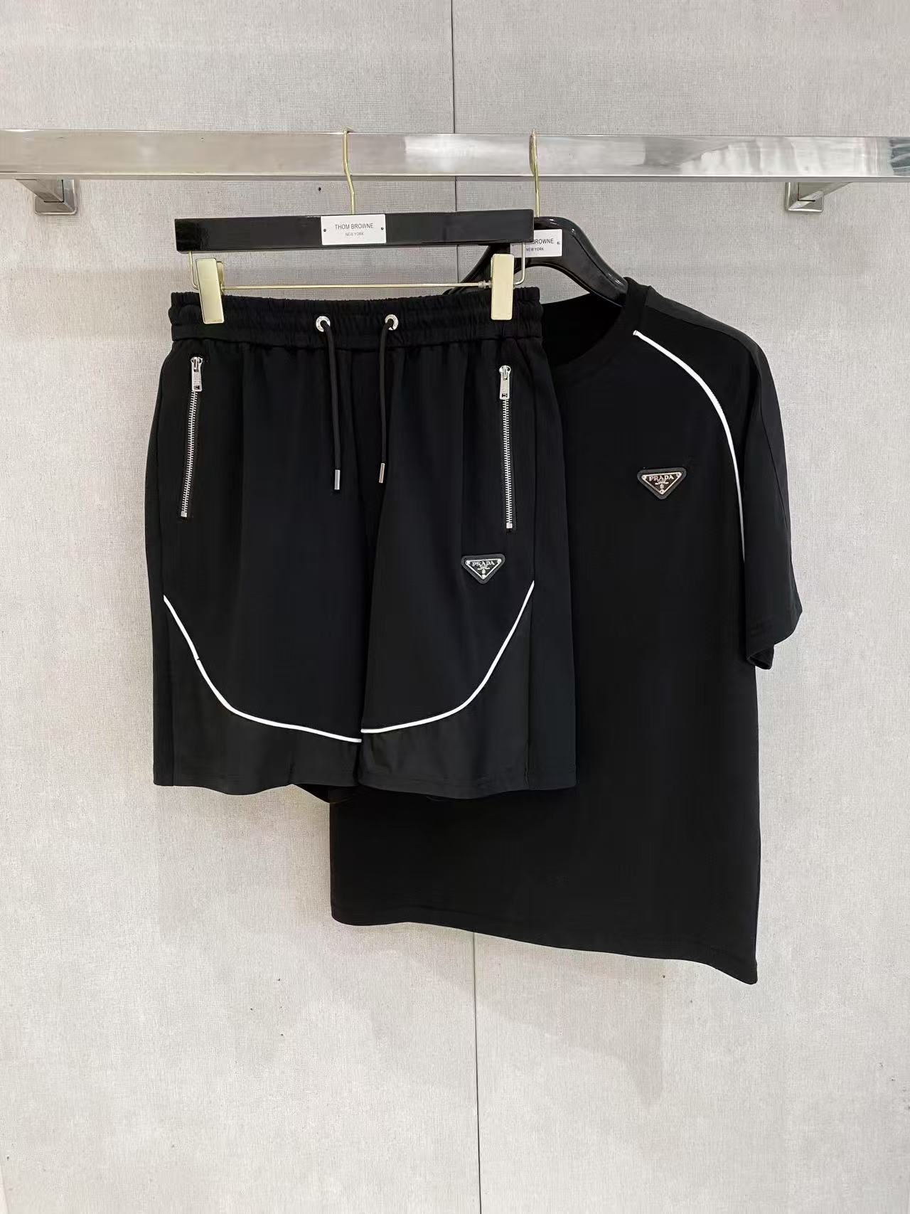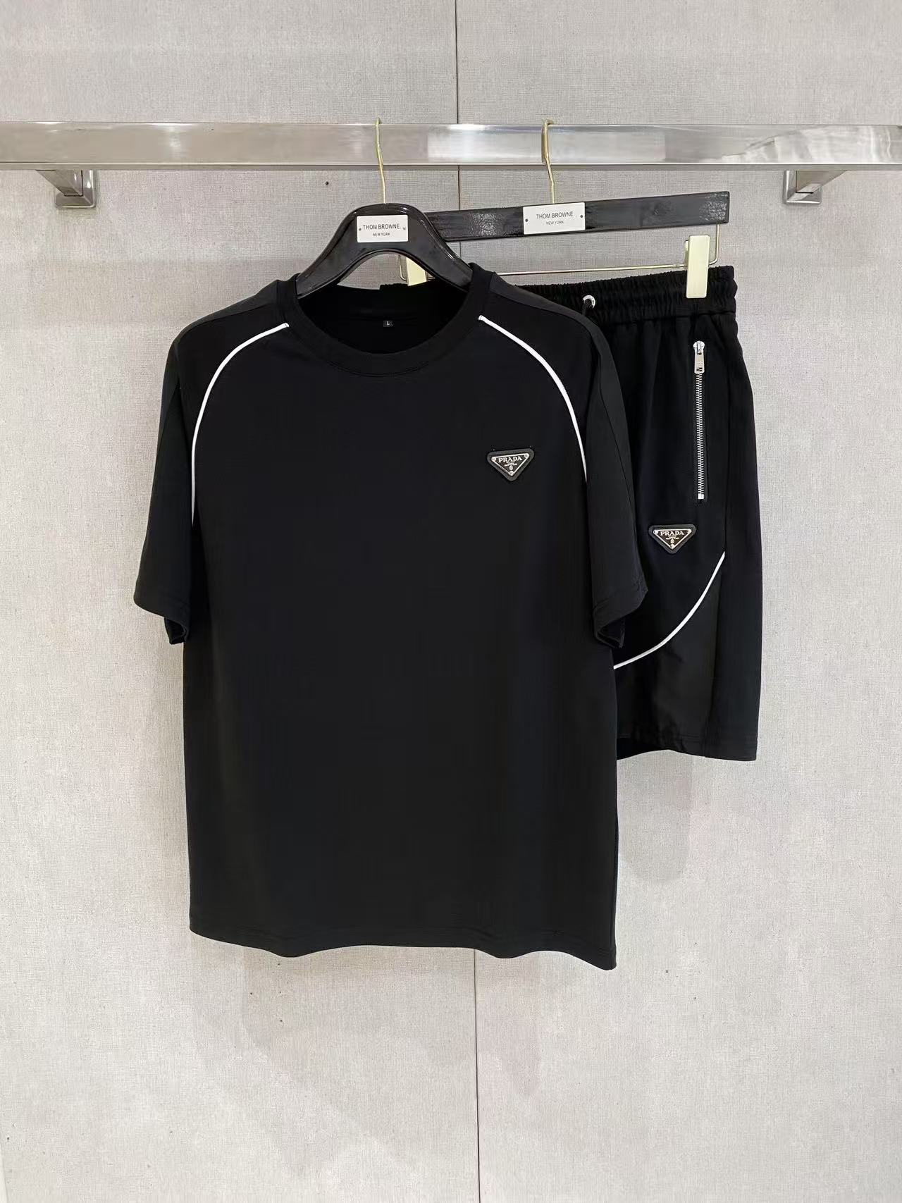 Prada ???? high-end custom 2025 spring/summer new collection launch counter the latest short-sleeved and short-shorts casual set high-end custom design avant-garde fashion! The brand logo emphasizes high-end custom pure cotton fabric with meticulous craftsmanship design. Soft to the touch. Comfortable to wear. Counter level exquisite vehicle lines. The workmanship is exquisite. The wearing effect is incredibly cool! Essential items for stylish men!