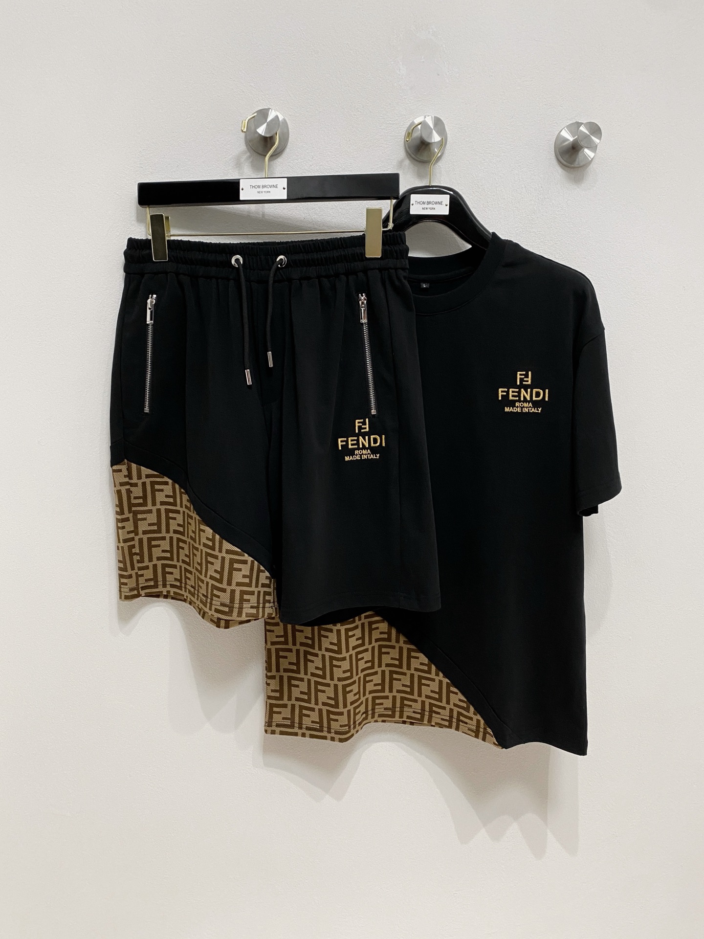 Fendi ???? high-end custom 2025 spring/summer new collection First Release counter the latest short-sleeved and short-shorts casual set high-end custom design avant-garde and fashionable! The brand logo emphasizes high-end custom pure cotton fabric with meticulous craftsmanship design. Soft to the touch. Comfortable to wear. Counter level exquisite vehicle lines. The workmanship is exquisite. The wearing effect is incredibly cool! Essential items for stylish men! Size: M-3XL