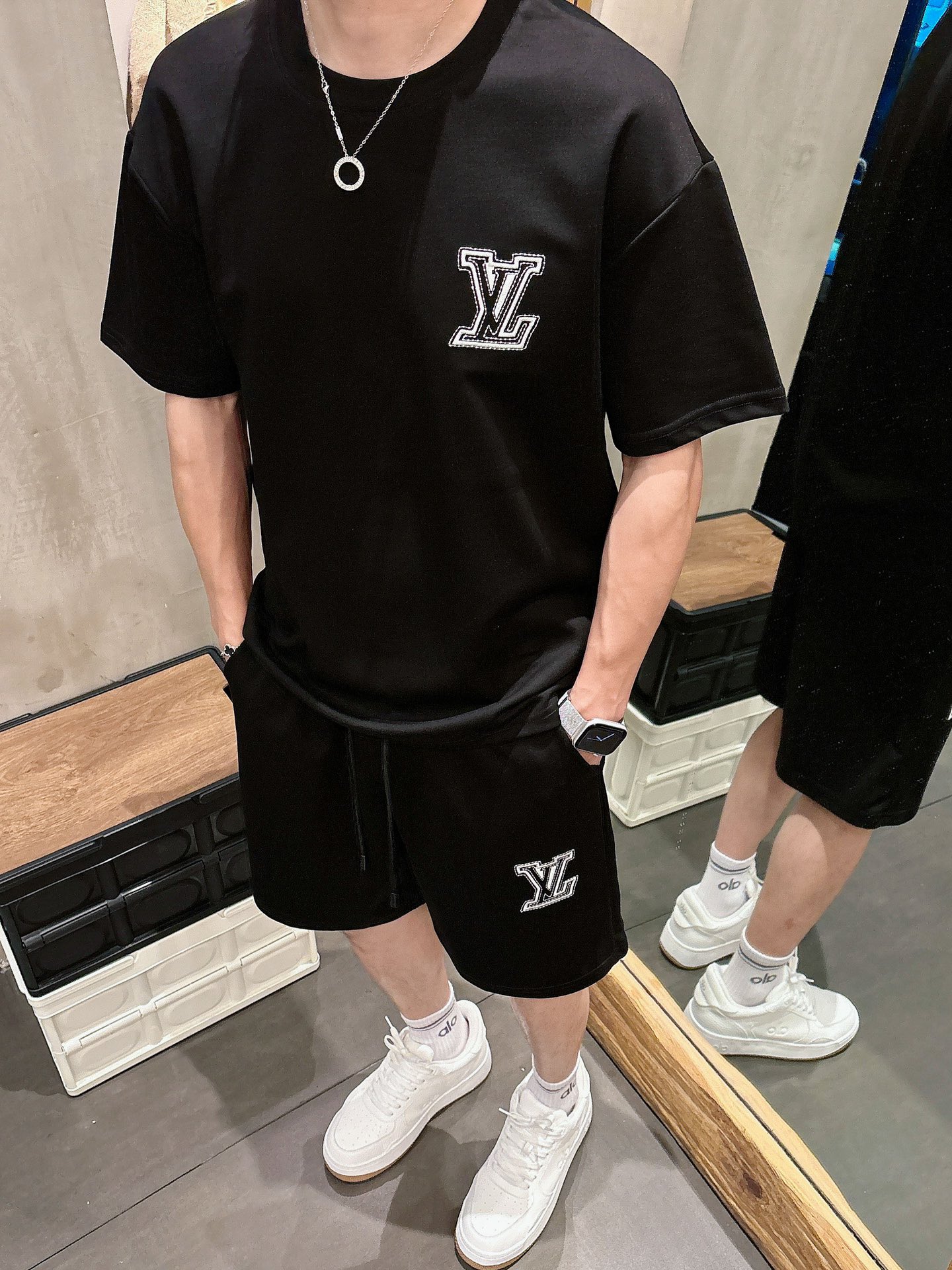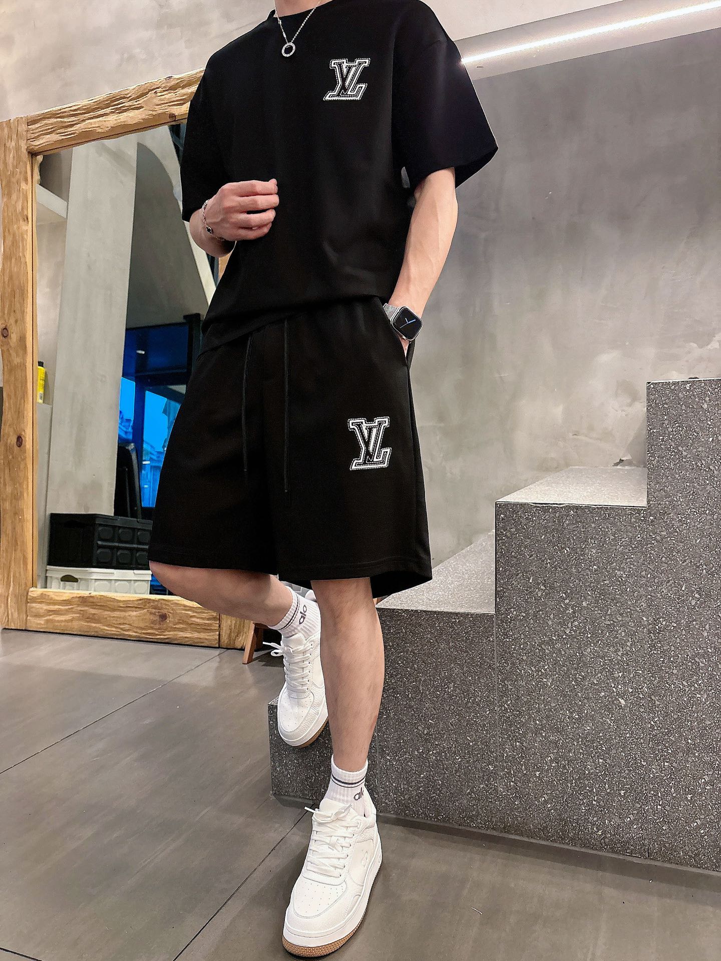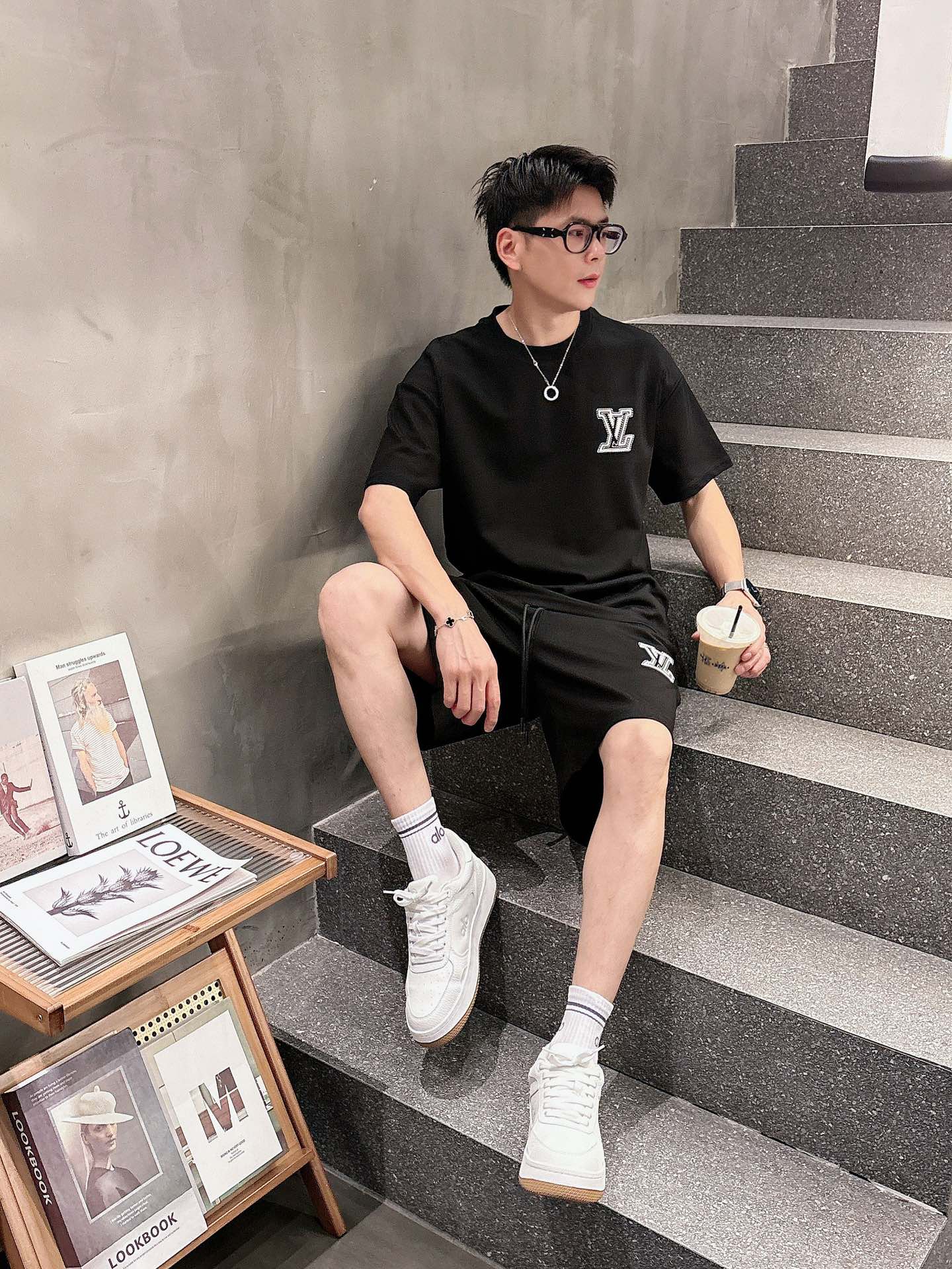 LV (Louis vuitton) ???? high-end custom 2025 spring/summer new collection Launch counter the latest short-sleeved and short-shorts casual set, high-end custom design avant-garde and fashionable! The brand logo emphasizes high-end custom pure cotton fabric with meticulous craftsmanship design. Soft to the touch. Comfortable to wear. Counter level exquisite vehicle lines. The workmanship is exquisite. The wearing effect is incredibly cool! Essential items for stylish men! Size: M-3XL!!