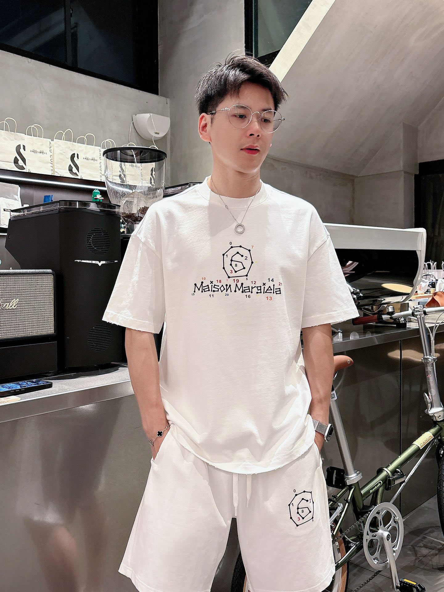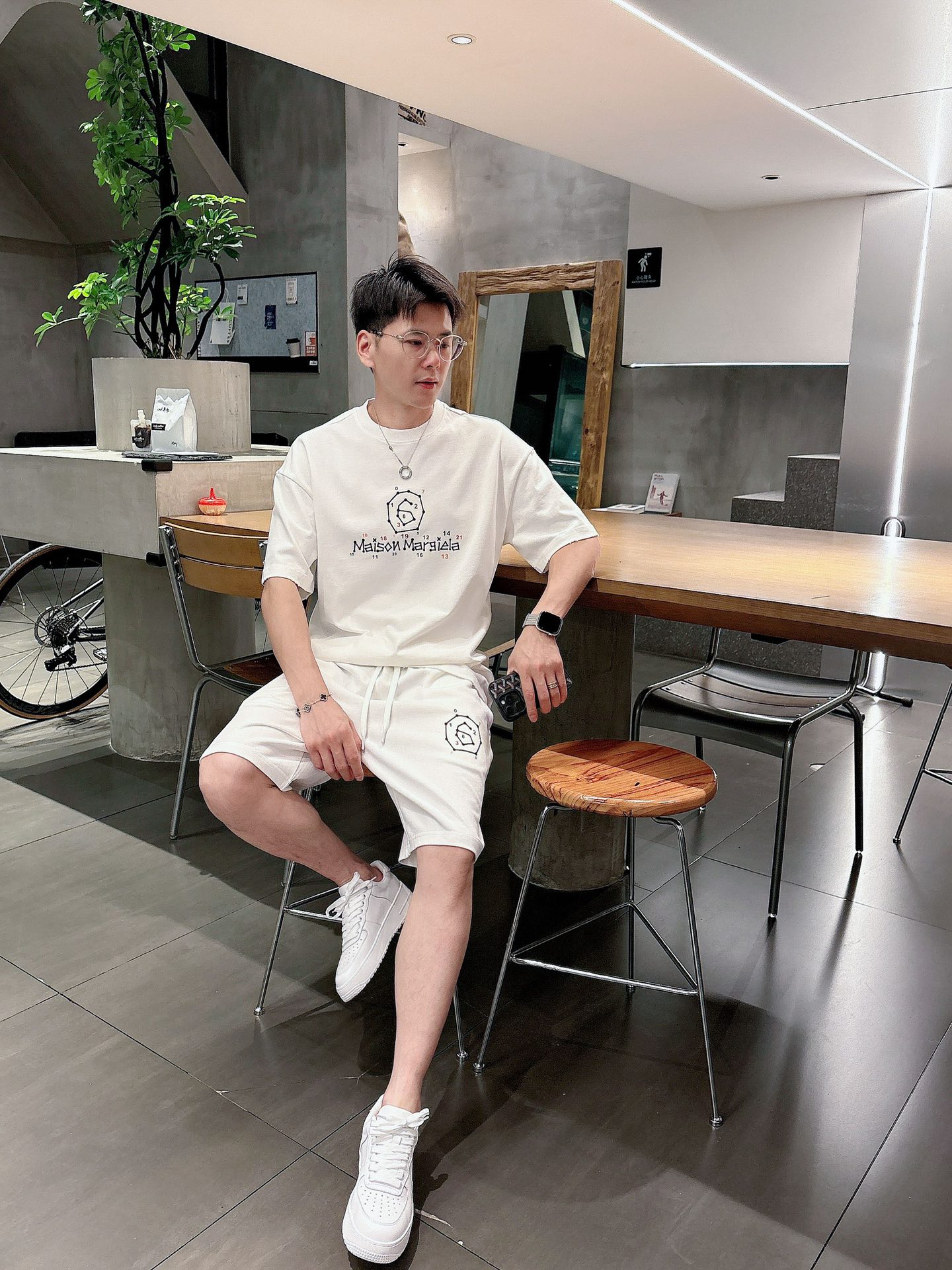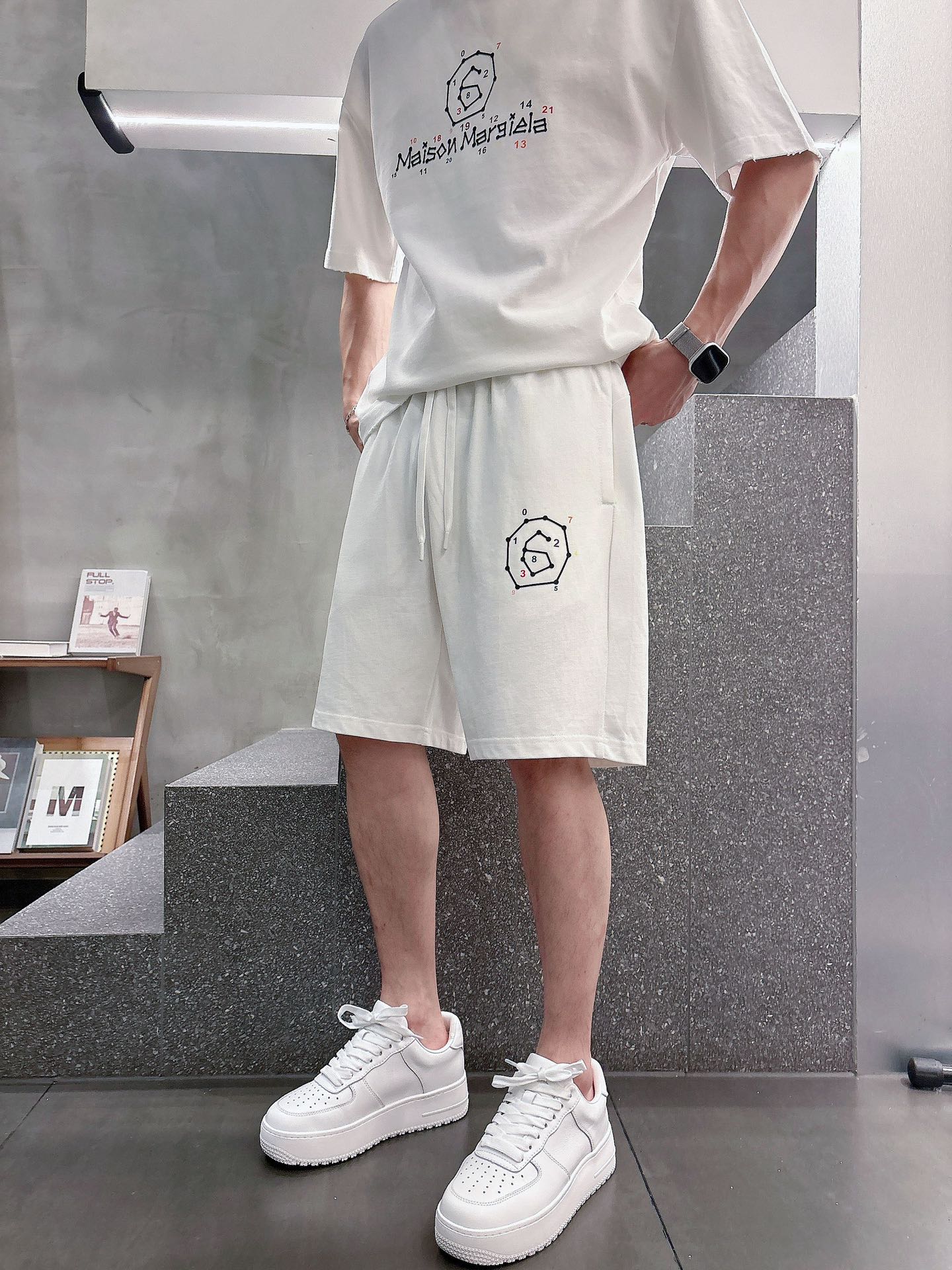 MM6 Majilla ???? high-end custom collar, sleeve hem with perforated design. New spring/summer 2025 collection first release at the counter. The latest short-sleeved and short-shorts casual set. Heavy concave and convex pattern design. High-end pure cotton custom design, avant-garde and fashionable! The brand logo emphasizes high-end custom pure cotton fabric with meticulous craftsmanship design. Soft to the touch. Comfortable to wear. Counter level exquisite vehicle lines. The workmanship is exquisite. The wearing effect is incredibly cool! Essential items for stylish men! Size: M-2XL loose style. Please report your height and weight