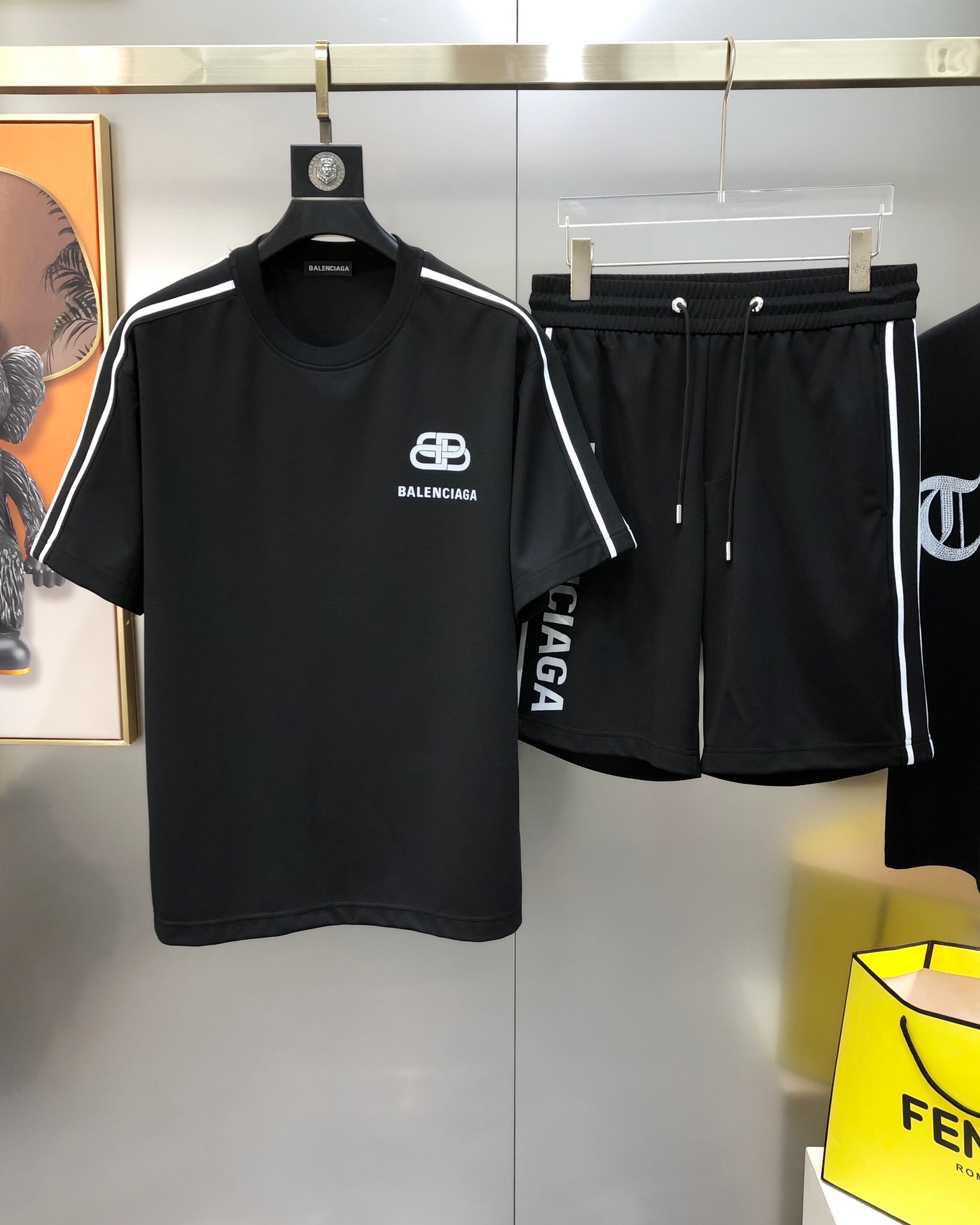 Bal*nciaga's new Spring/Summer 2025 single-piece men's casual set with a round neck, short sleeve and shorts is available for sale without disassembly. ?? The official website is also selling the best-selling items ?? ?. The high version is fashionable and versatile ?. The printed rubber letter logo pattern design is made of original imported cotton blend fabric, which is soft and delicate to the touch and comfortable to wear Original imported engraved hardware accessories for customers, fine workmanship by the OEM factory, smooth lines, exquisite craftsmanship, superb style, very fashionable and cool when worn ?? highly recommended! Counter size: M-4XL (The largest size can wear about 195 pounds. Please report your height and weight when placing an order.) Black for shipment the next day