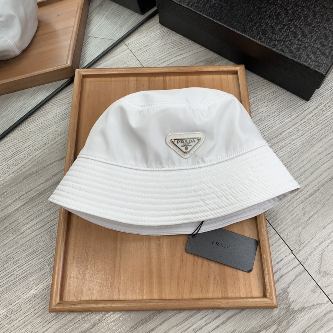. Prada Home. Double-sided triangular logo fisherman, high-end and comfortable! High-end material!! The top trend in the hat industry this year is definitely fisherman hats! This year's fisherman's hats are dazzling! It's very versatile and suitable for both men and women! Dear friends, you can look at the details! The stitching is neat! Breathable and comfortable inside! The color combination is simple and elegant!