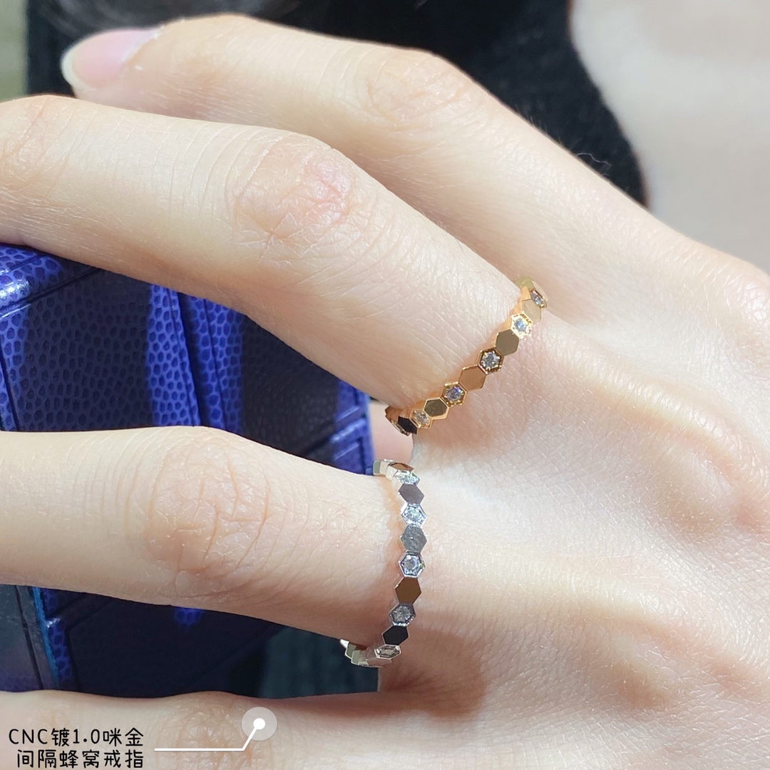 V gold ZP plate CNC engraving gold plating 8680180 ?? Shangmei interlocking honeycomb ring ?? Size 5678, three colors ?? (lay-up effect is more beautiful) Luxury ?? high-end custom ? Continuing from Shangmei honeycomb Bee My Love replicate the love of the honeycomb in the heart, carry love on the body Build LOVE nest together ?? SUPER shine ??Rings Ring