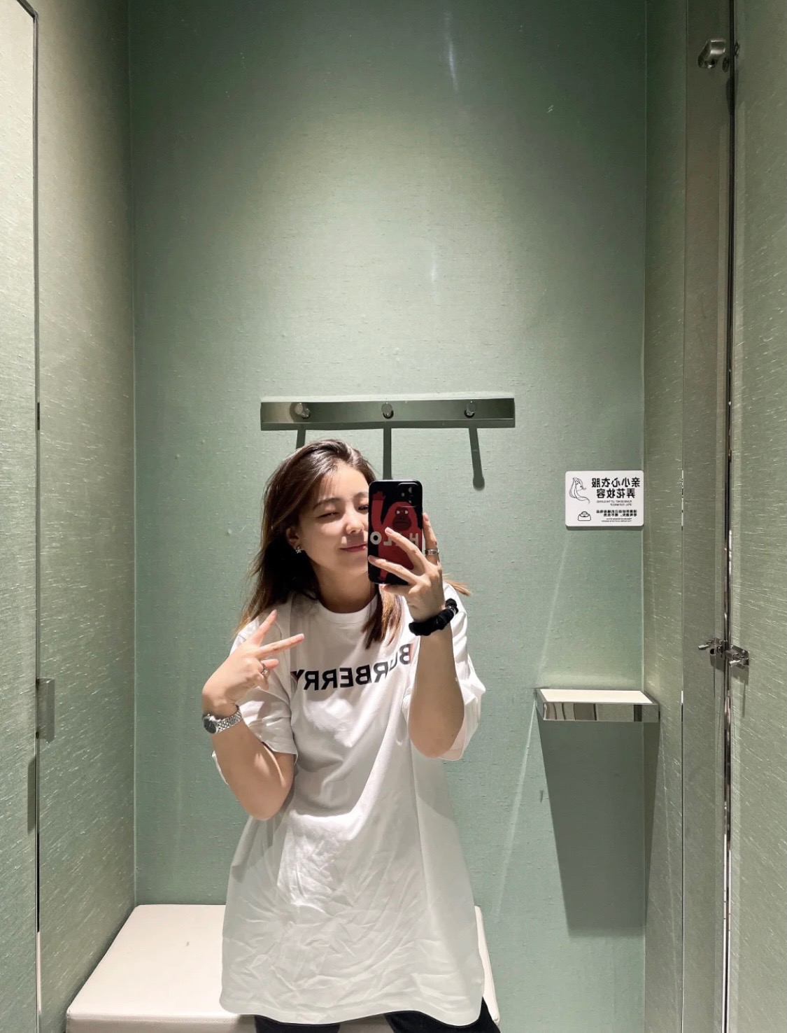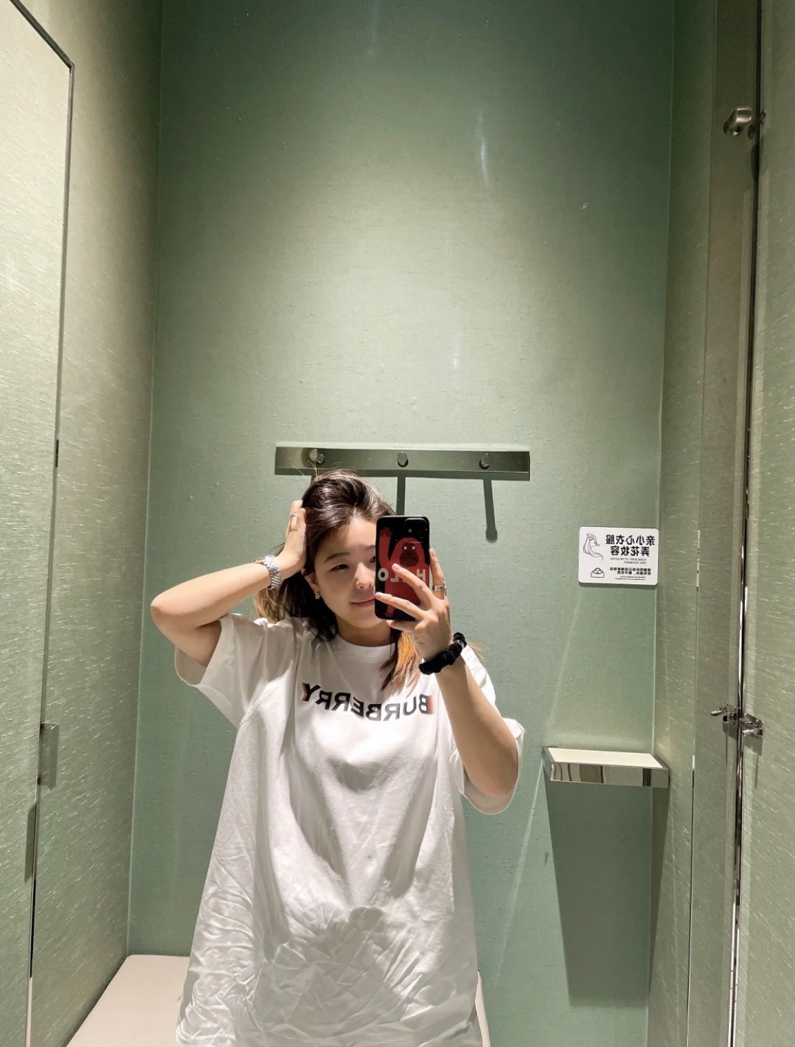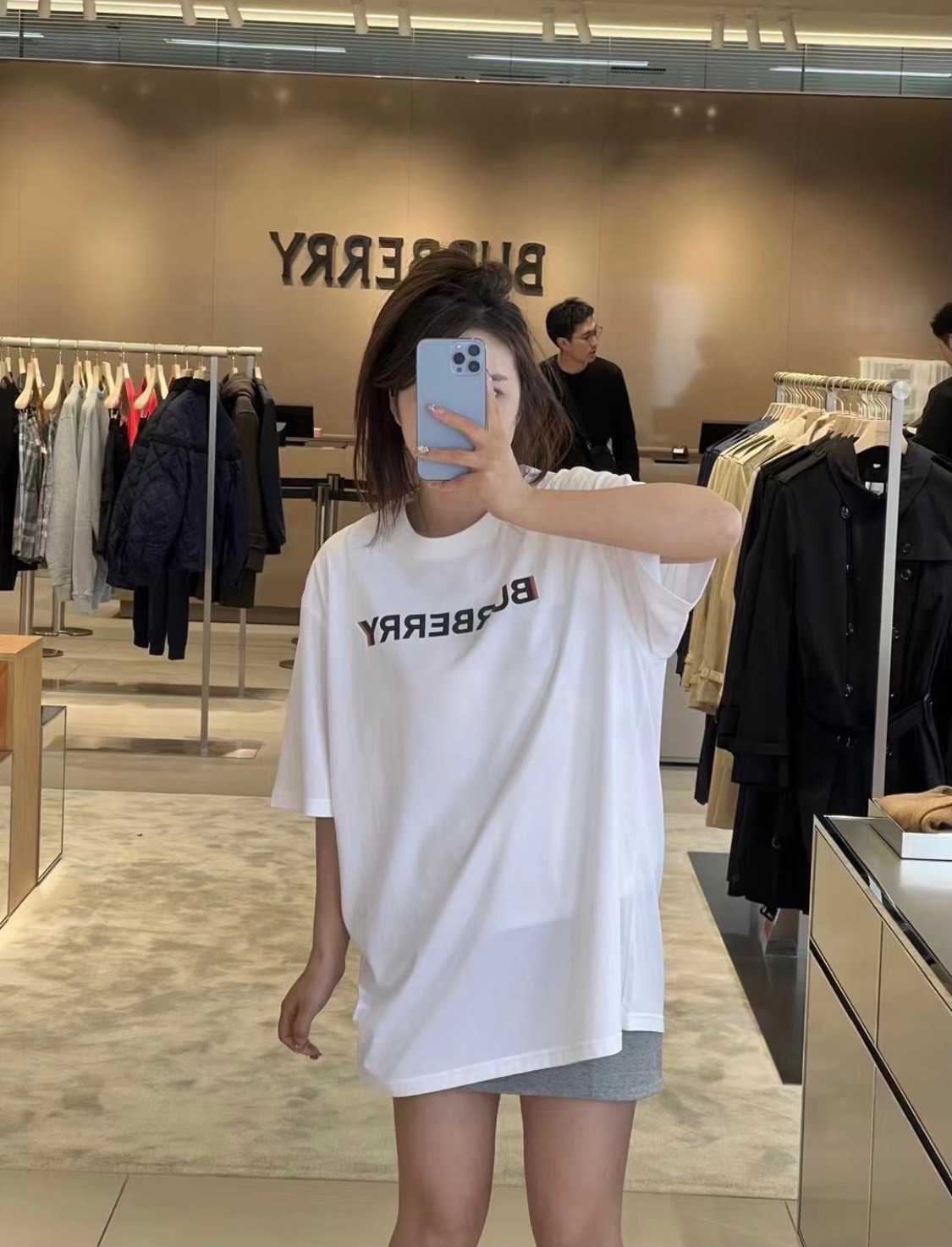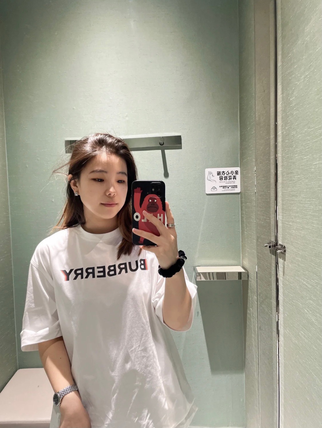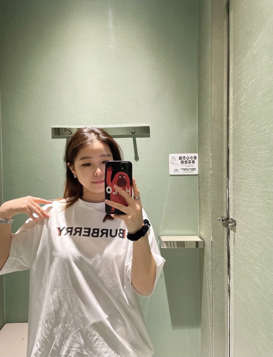 #Burberry/ Burberry classic double shadow letter print short-sleeved top wearing effect