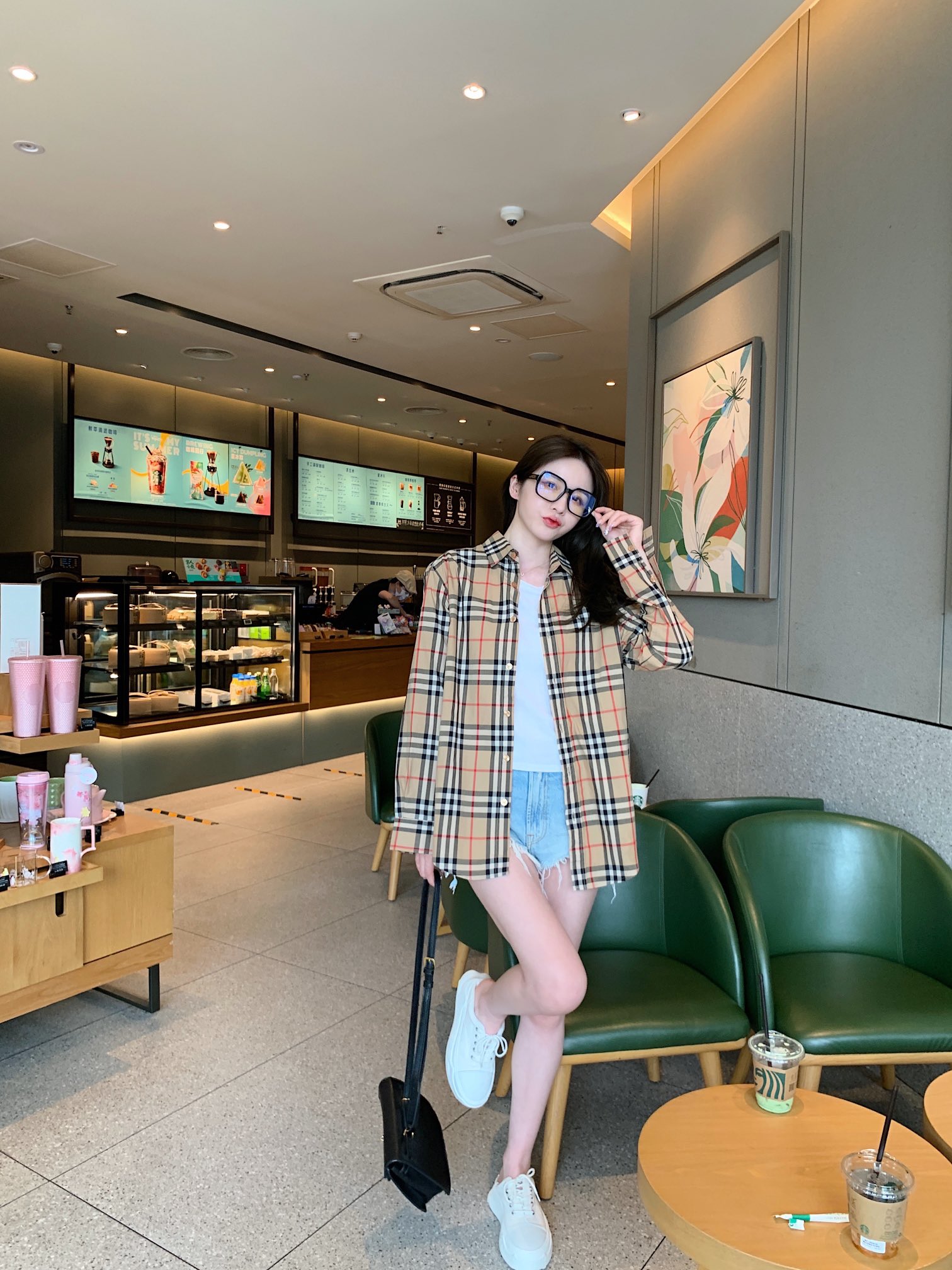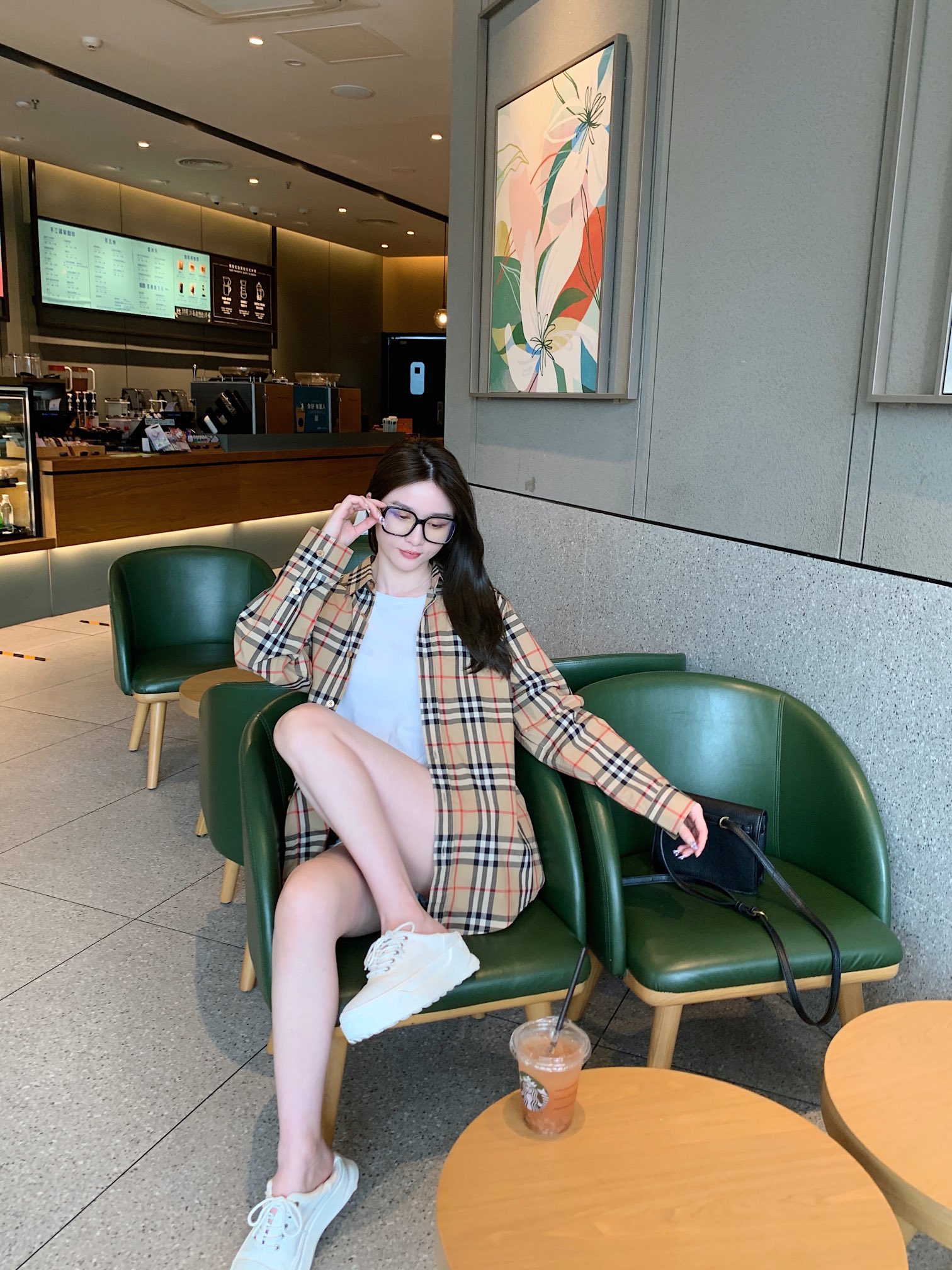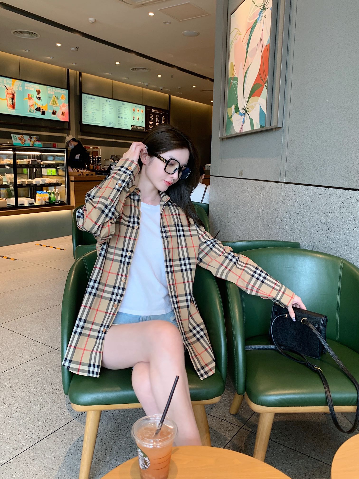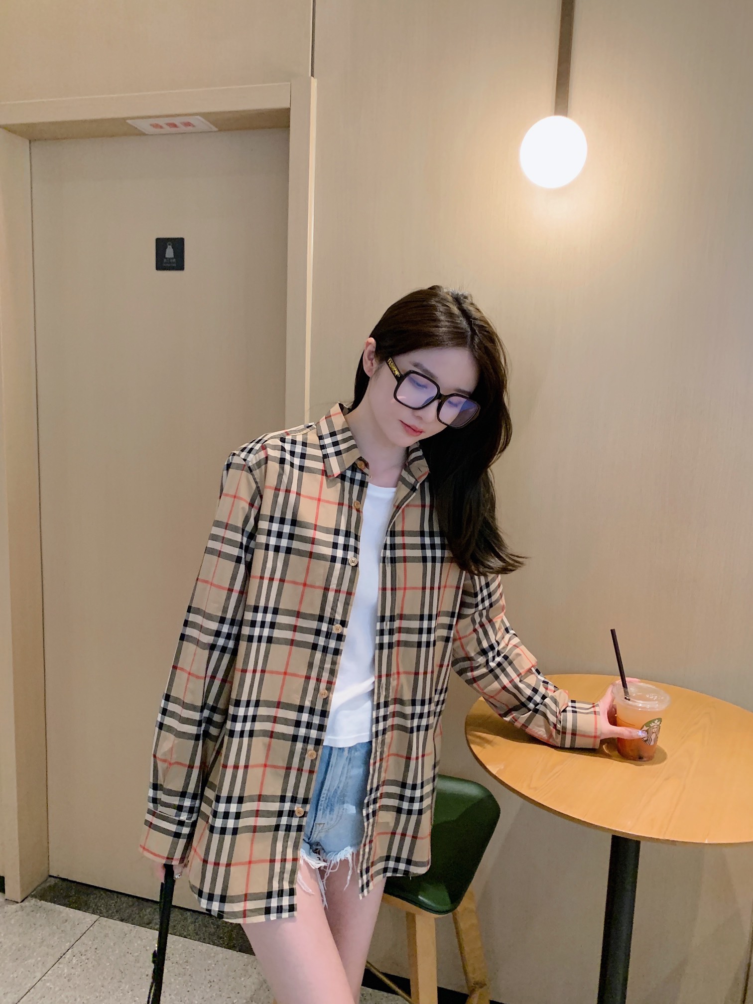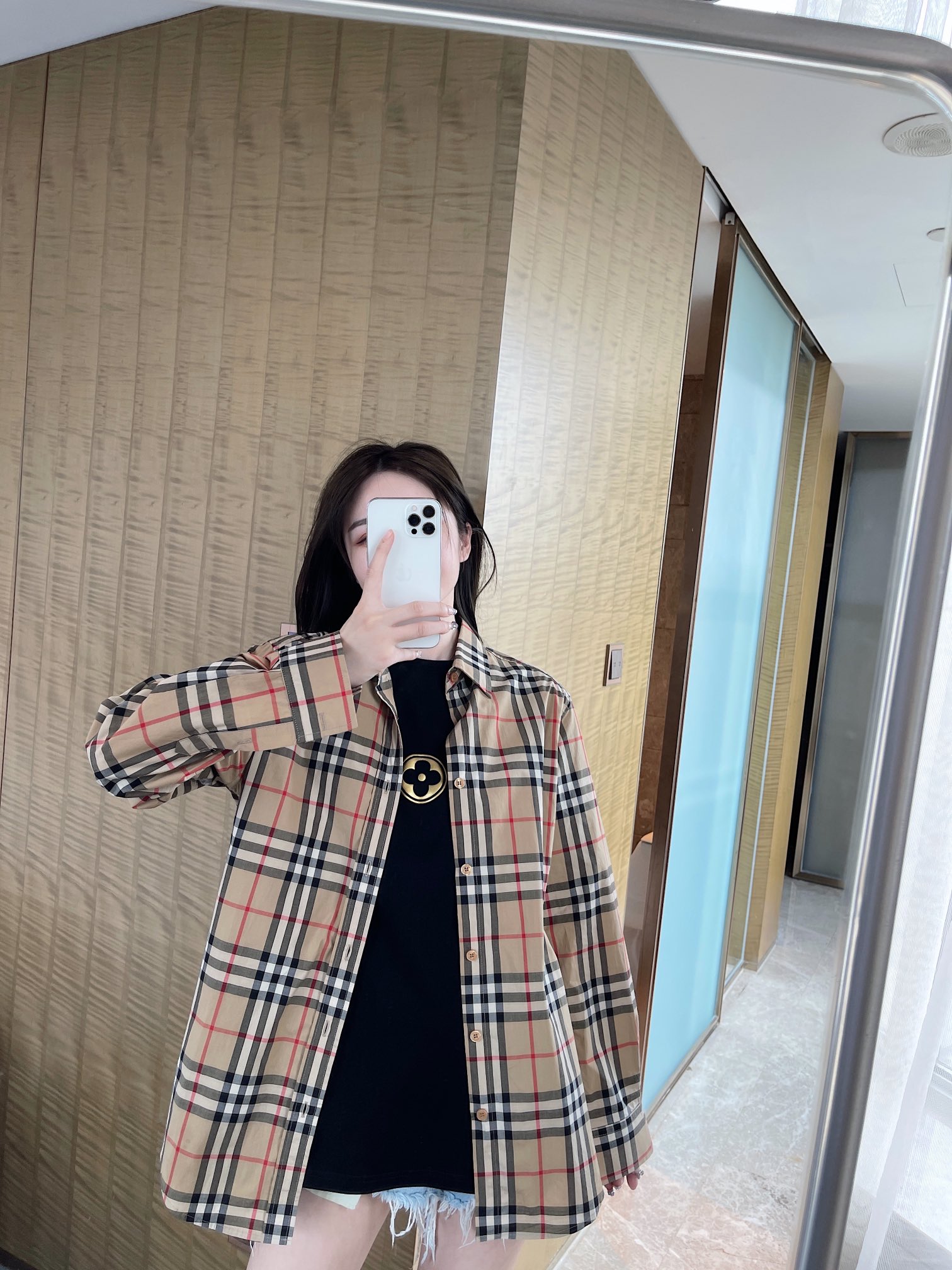 The wearing effect of Burberry's classic striped long-sleeved shirt #