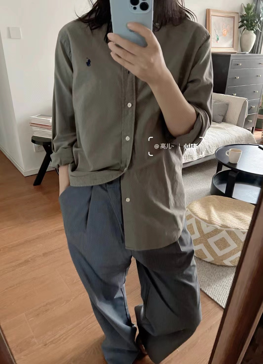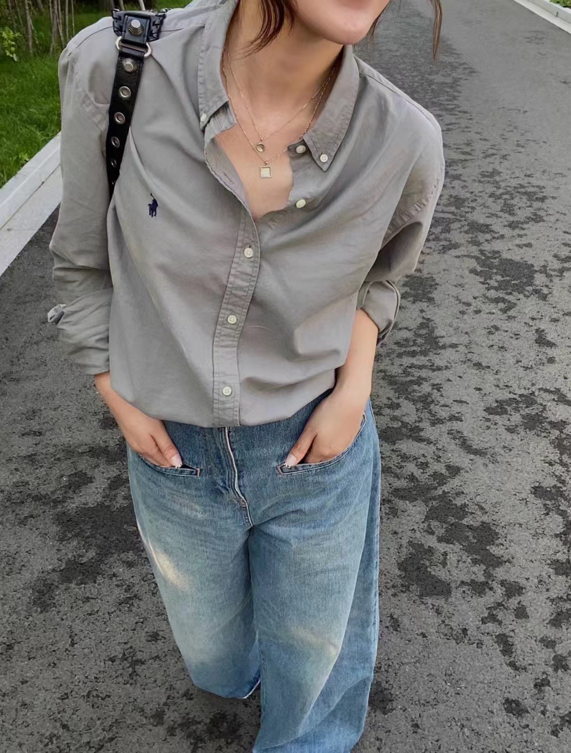 The wearing effect of the classic solid-color small logo warhorse embroidery shirt of Ralph Lauren #